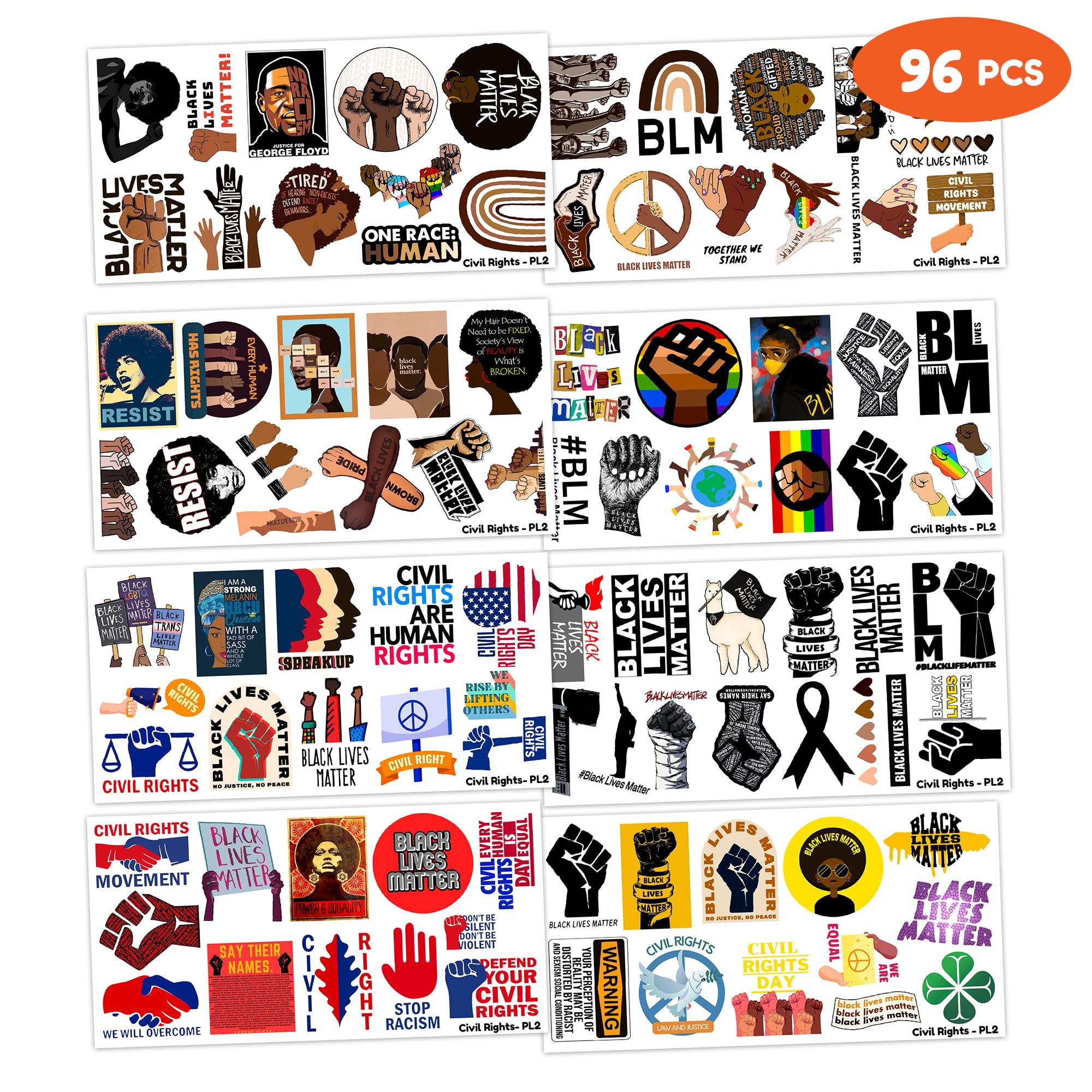 Cute Civil Rights Black Lives Matter Day Black History Month Party Supplies: 8 sheets Civil Rights Black Lives Matter Day History Month cartoon themed temporary tattoos stickers, features an assortment of cute themed characters, each sheet measures 6.1 x 3.1 inch , all kinds of designs and colors will bring more fun to your party, one size fit all adult and kids. Perfect Civil Rights Black Lives Matter Day BLM African American Black History Month Birthday Decorations: All the temporary tattoos are design with many themed. Fits any smooth part: face, hands, arms, shoulders, back, legs water bottle, cup,mug and other stuff and so on. Great fun for party favors, birthday gift, clubs, festivals or party supplies,etc. and can be used by children, kids, girls, boys, women, men. Easy to Use and Remove: Cut out the desired motif, rub the back of the tattoo with a damp cloth or sponge for 30 seconds. They have been put through rigorous party testing and are 100% guaranteed to last all day. Simply soak the tattoo with baby oil or olive oil alcohol and remove the tattoo after a few minutes. Safe And High Quality: High quality printing makes all dessert patterns colorful and realistic, waterproof. Importantly, which is harmless to kids, non-allergenic for kids skin. Should not be used for children under 3 years old, people with a history of sensitive skin, and if any symptoms appear, stop using immediately. We all recommend using a small part to use the test first, and if there is no problem, it can be used normally. Customer Service: We guarantee to provide you with a good shopping experience. If you have any questions, please contact us. We will try our best to help you solve the problem and ensure that you have the best shopping experience.