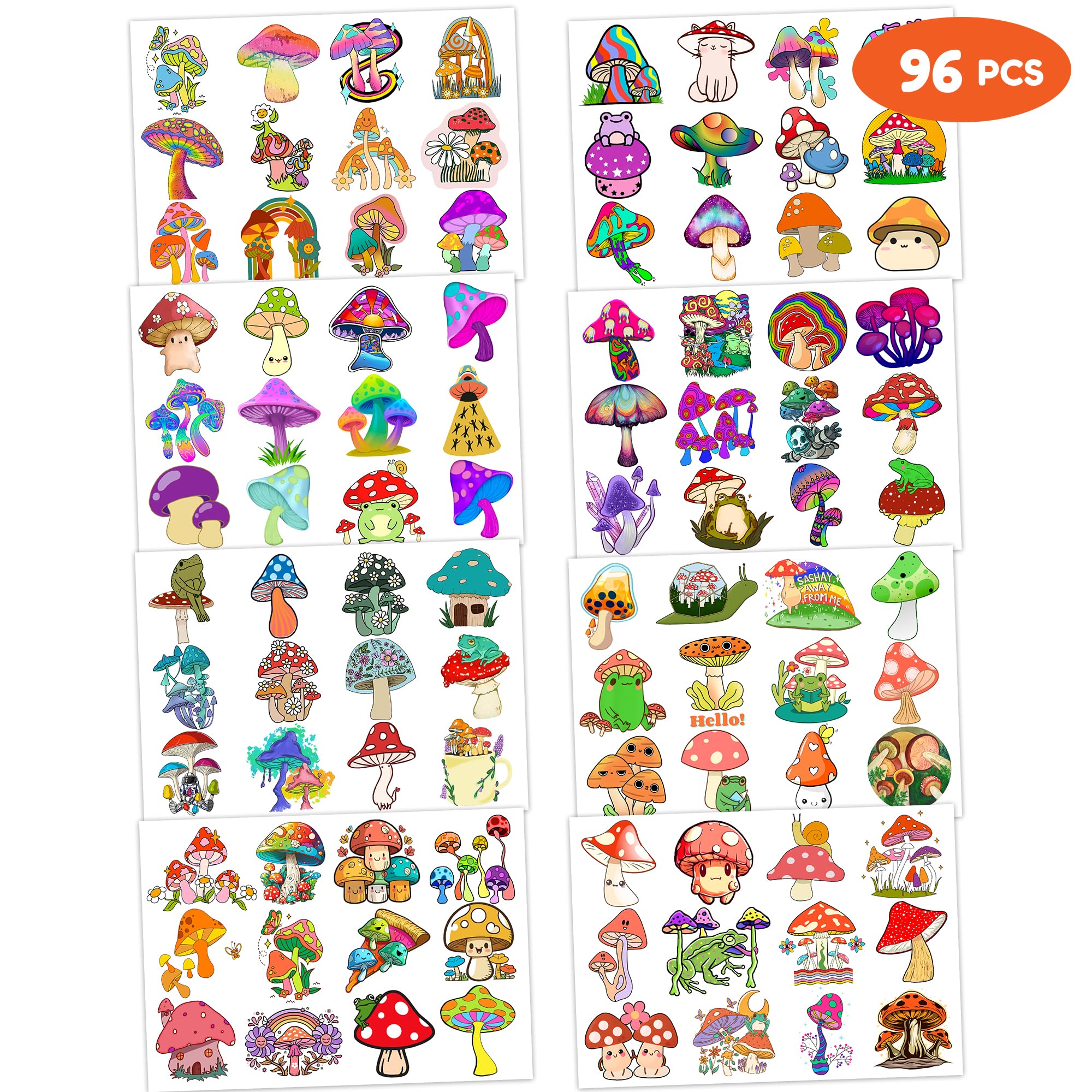 Cute Jungle Mushroom Veggie Trippy Forest Plant Party Supplies: 8 sheets Mushroom Veggie Trippy Forest cartoon themed temporary tattoos stickers, features an assortment of cute themed characters, each pattern measures 6.1 x 3.1 inch , all kinds of designs and colors will bring more fun to your party, one size fit all adult and kids. Perfect Jungle Mushroom Veggie Trippy Forest Plant Birthday Decorations: All the temporary tattoos are design with many themed. Fits any smooth part: face, hands, arms, shoulders, back, legs water bottle, cup,mug and other stuff and so on. Great fun for party favors, birthday gift, clubs, festivals or party supplies,etc. and can be used by children, kids, girls, boys, women, men. Easy to Use and Remove: Cut out the desired motif, rub the back of the tattoo with a damp cloth or sponge for 30 seconds. They have been put through rigorous party testing and are 100% guaranteed to last all day. Simply soak the tattoo with baby oil or olive oil alcohol and remove the tattoo after a few minutes. Safe And High Quality: High quality printing makes all dessert patterns colorful and realistic, waterproof. Importantly, which is non-toxic and harmless to kids, non-allergenic for kids skin. Should not be used for children under 3 years old, people with a history of sensitive skin, and if any symptoms appear, stop using immediately. We all recommend using a small part to use the test first, and if there is no problem, it can be used normally. Customer Service: We guarantee to provide you with a good shopping experience. If you have any questions, please contact us. We will try our best to help you solve the problem and ensure that you have the best shopping experience.