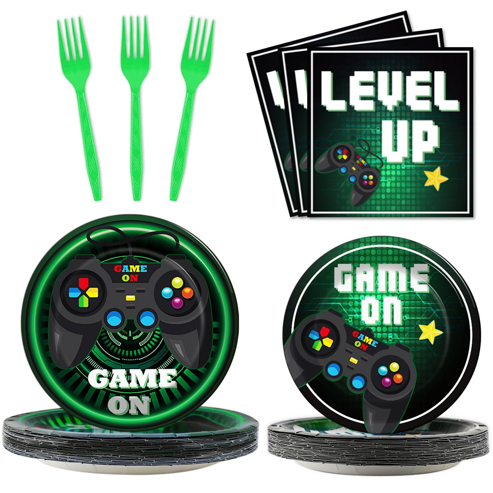96 Pcs Video Game Plates and Napkins Party Supplies Gaming Party Tableware Set Green Gamer Party Decorations Favors for Kids Birthday Baby Shower Serves 24