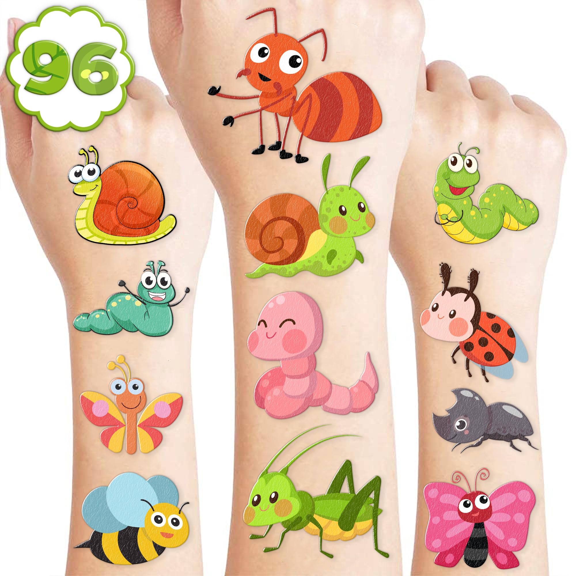 96PCS Bug Temporary Tattoos Birthday Party Supplies Decorations Tattoos Stickers Insect, Ladybug, Ant, Snail, Butterfly Cute Party Favors Kids Boys Girls Gifts Ideas Classroom School Prizes Themed