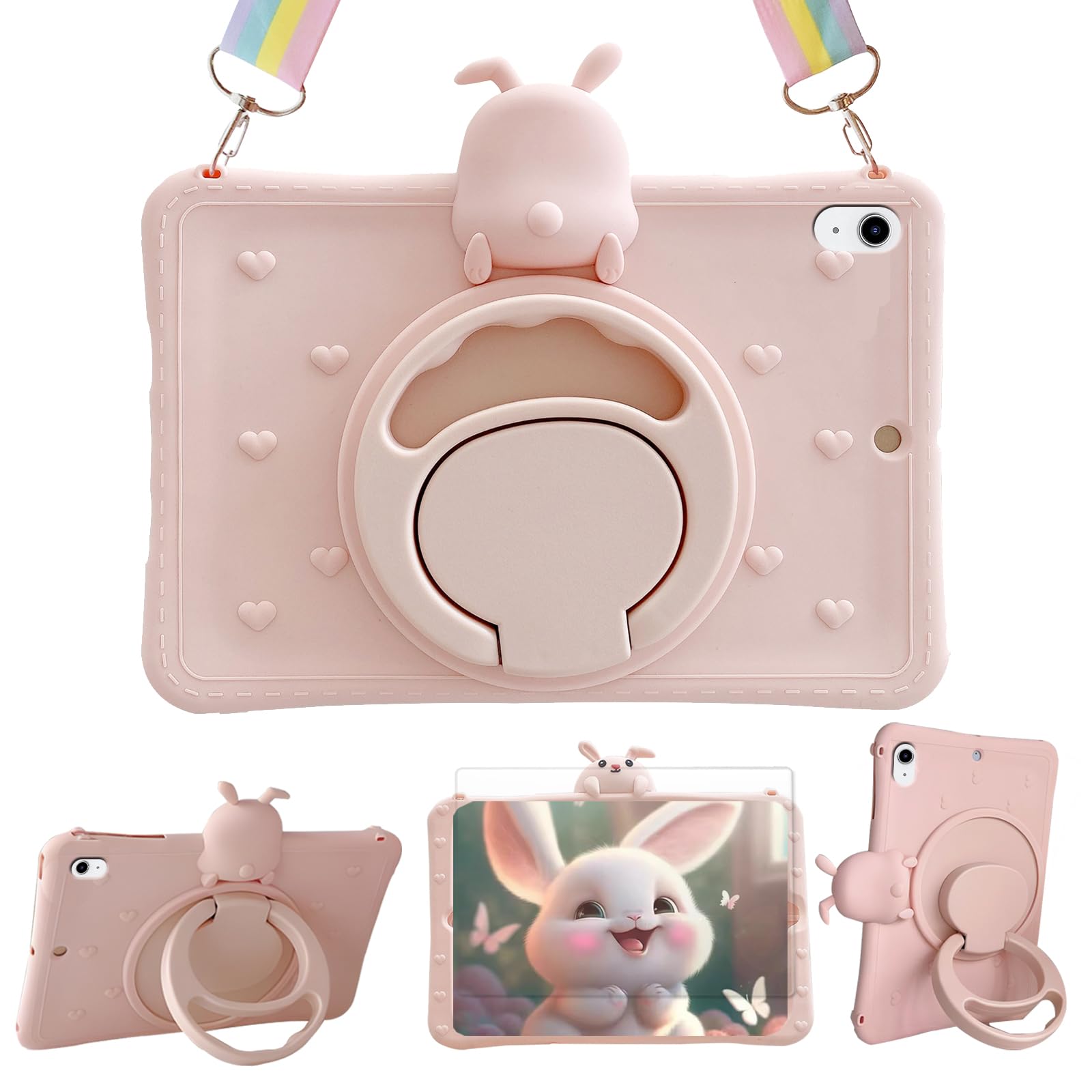 A-BEAUTY Case Fits New iPad 10th Generation 2022 iPad Case, with Rotating kickstand/ Shoulder Strap/ Screen Protector Cute bunny silicone tablet case