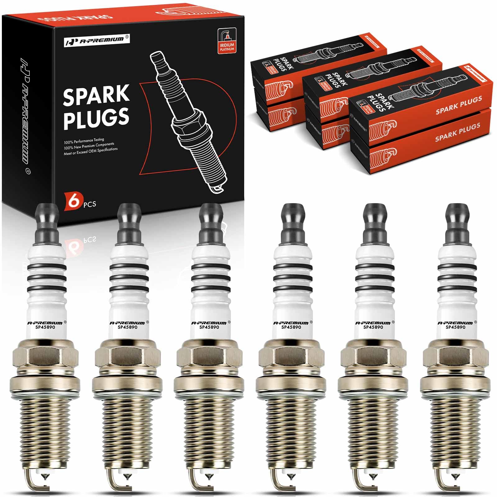 A-Premium Iridium & Platinum Spark Plugs Compatible with Toyota Camry, Highlander, Sienna, Avalon, Solara, Supra & Lexus RX300, RX330, RX400h, ES300, ES330, IS300, GS300, SC300, 3.0L 3.3L, Pack of 6