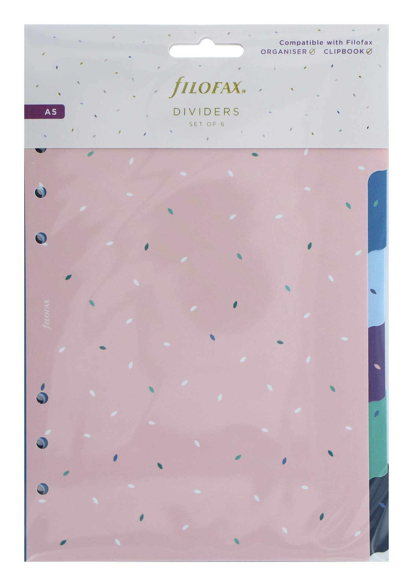 Part of the accessories for the beautiful new Garden range of organisers, but perfect to use with any Filofax A5 organiser. Add some flair to your pages with this colourful set of six durable plastic dividers. 153mm x 210mm. Not compatible with Filofax refillable notebooks.
