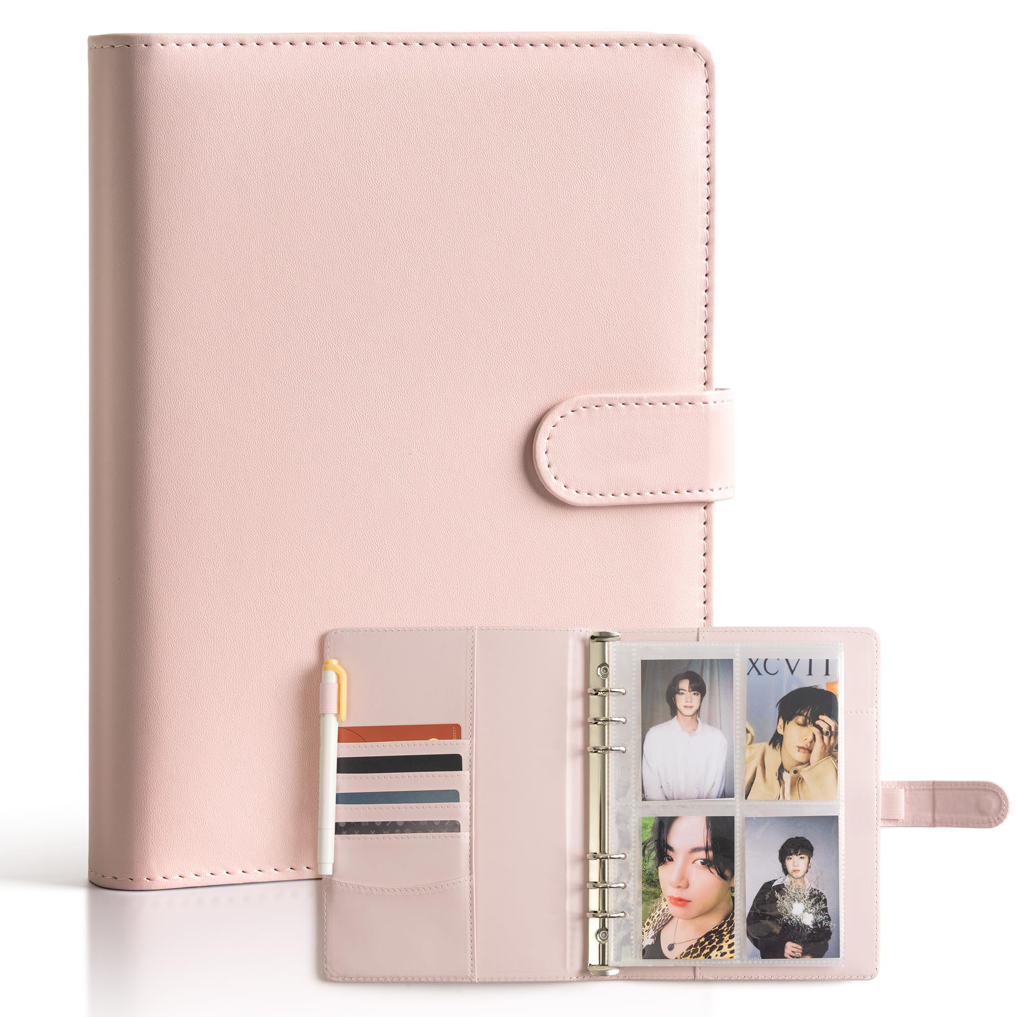 The package includes a A5 binder photocard album with 30 inner pages capable of holding a total of 240 sheets of 2 x 3 inch Kpop photos The photocard binder cover features a delicate design with an exclusive transparent card sleeve. This allows you to insert your favorite Kpop photos,perfect for star photocards. Made of high-quality PU leather,PU Leather Binder Cover with Magnetic Buckle Closure allowing you to seal it and protect your album from damage, as well as prevent the cards from falling out. the 6 ring binder is durable, waterproof, and safe.
