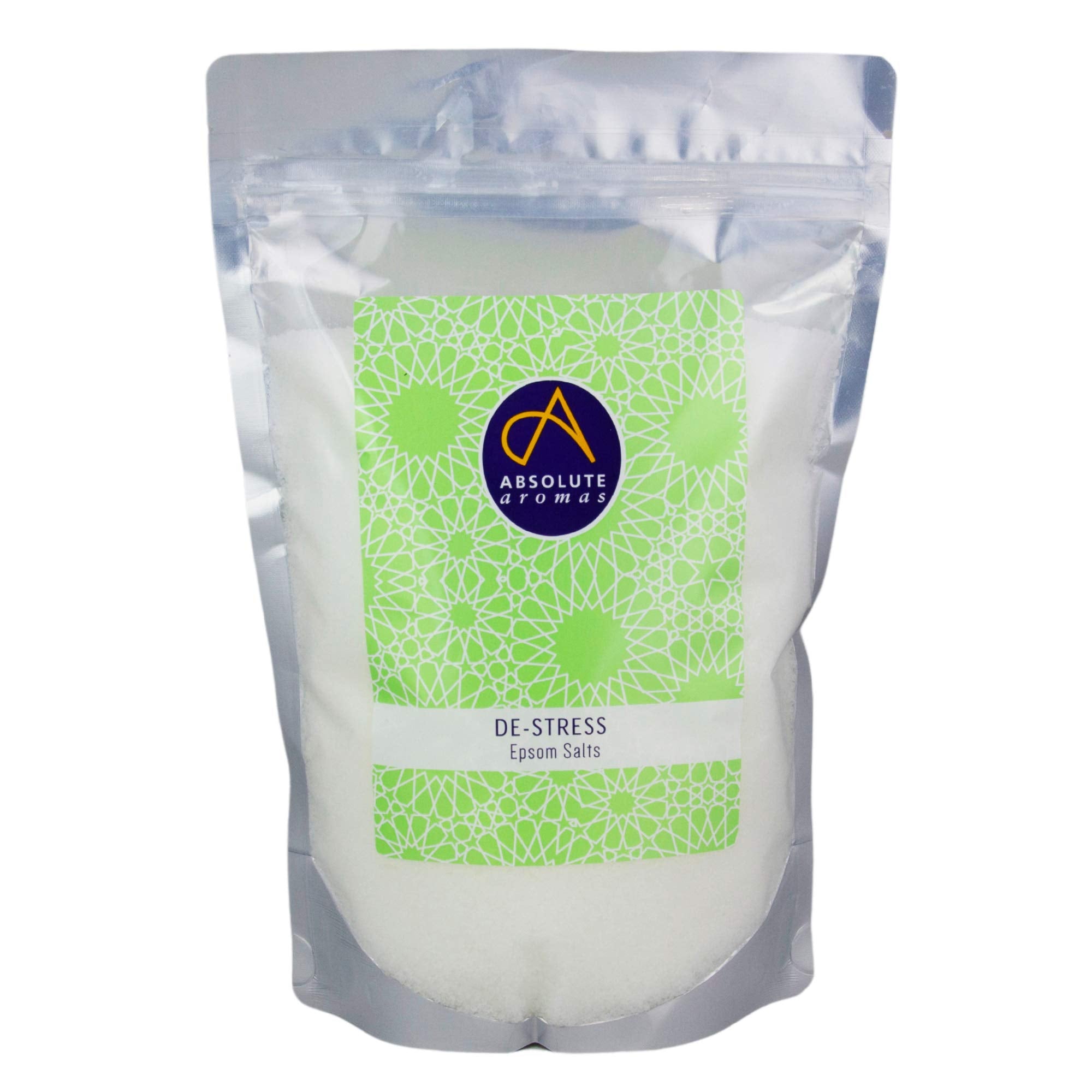 Absolute Aromas De-Stress Epsom Bath Salt 1kg - Magnesium Sulphate Infused with 100% Pure Essential Oils - Bergamot, Frankincense, Rose, Jasmine and Lavender Oils - Relieve Daily Tensions