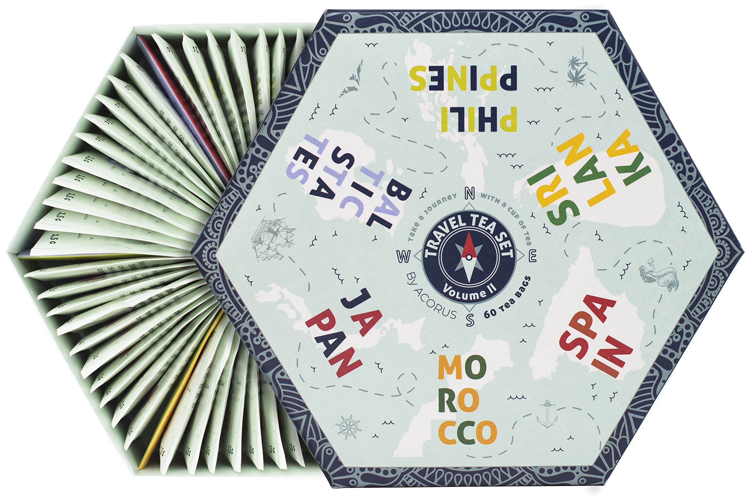 ACORUS | Travel Tea Set Vol. II | Discover the world with a cup of tea | Tea Gift Set Selection of 6 Herbal and Fruit Flavors | Large Selection Box | 60 Tea Bags
