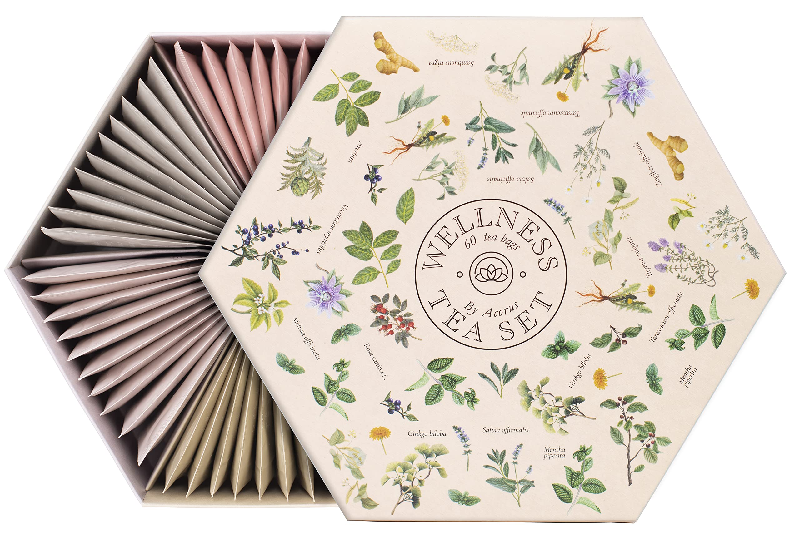 ACORUS | Wellness Tea Set | Natural Assorted Tea Hamper Box Gift Set | Tea Gift Set in the Beautiful Box | 6 Functional Teas | Tea Box For Various Occasions | Large Selection - 60 Tea Bags