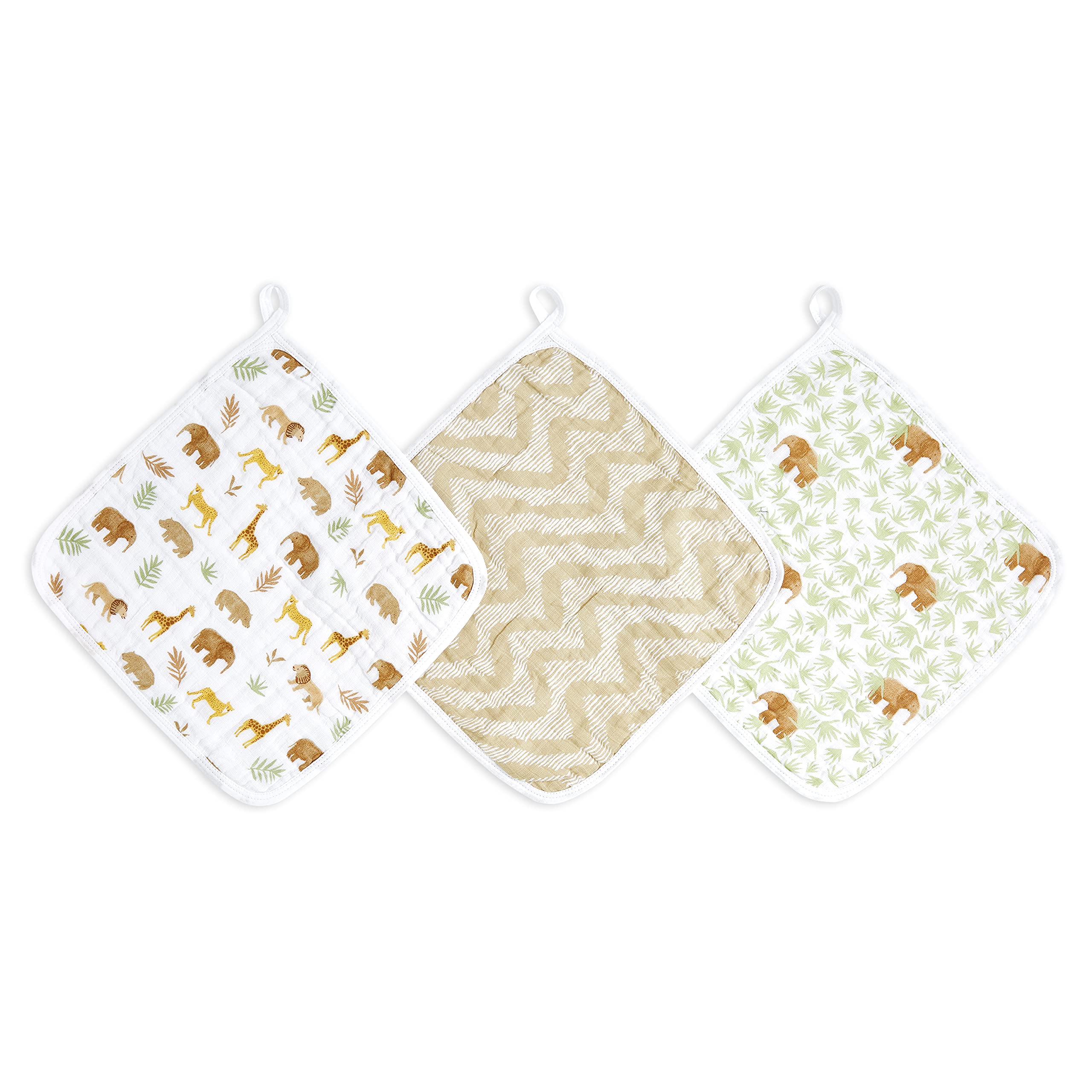 With the aden + anais essentials soft 100% cotton muslin washcloths, kids and adults of all ages can scrub-a-dub-dub in comfort and style. Gentle enough for delicate skin, yet durable enough for everyday use, they stay soft wash after wash. Plus, each of these bath time staples has a convenient loop, making it easy to hang the washcloth to dry between uses. All of aden + anais' fabrics are created free of azo chemical compounds. All of aden + anais' packaging is recyclable and complies to the Green Dot initiative