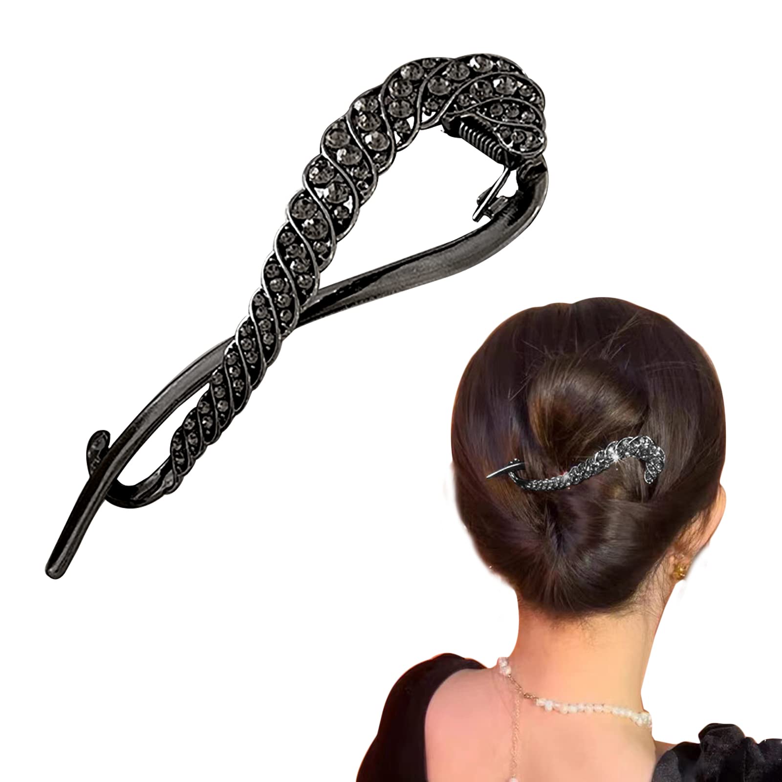 AEGYPIUS Hair Clip, Metal Rhinestone One Word Hair Clip, French Barrettes Jaw Clip, Hairpin - Durable for Everyday Use - Versatile Accessory for Women and Girls (Black)