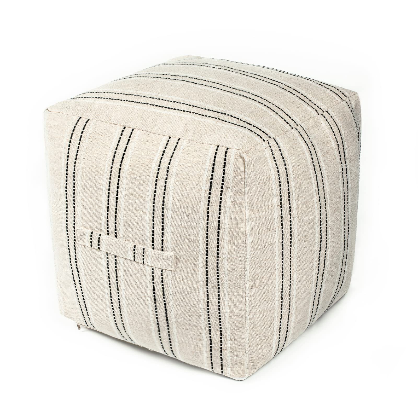 AELS Unstuffed Farmhouse Pouf Cover for Living Room, Boho Storage Bean Bag Cubes, Beige with Black Stitch Yarn Dyed Stripe Linen Square Ottoman Pouf Foot Rest Footstool, 18"x18"x18", Cover ONLY