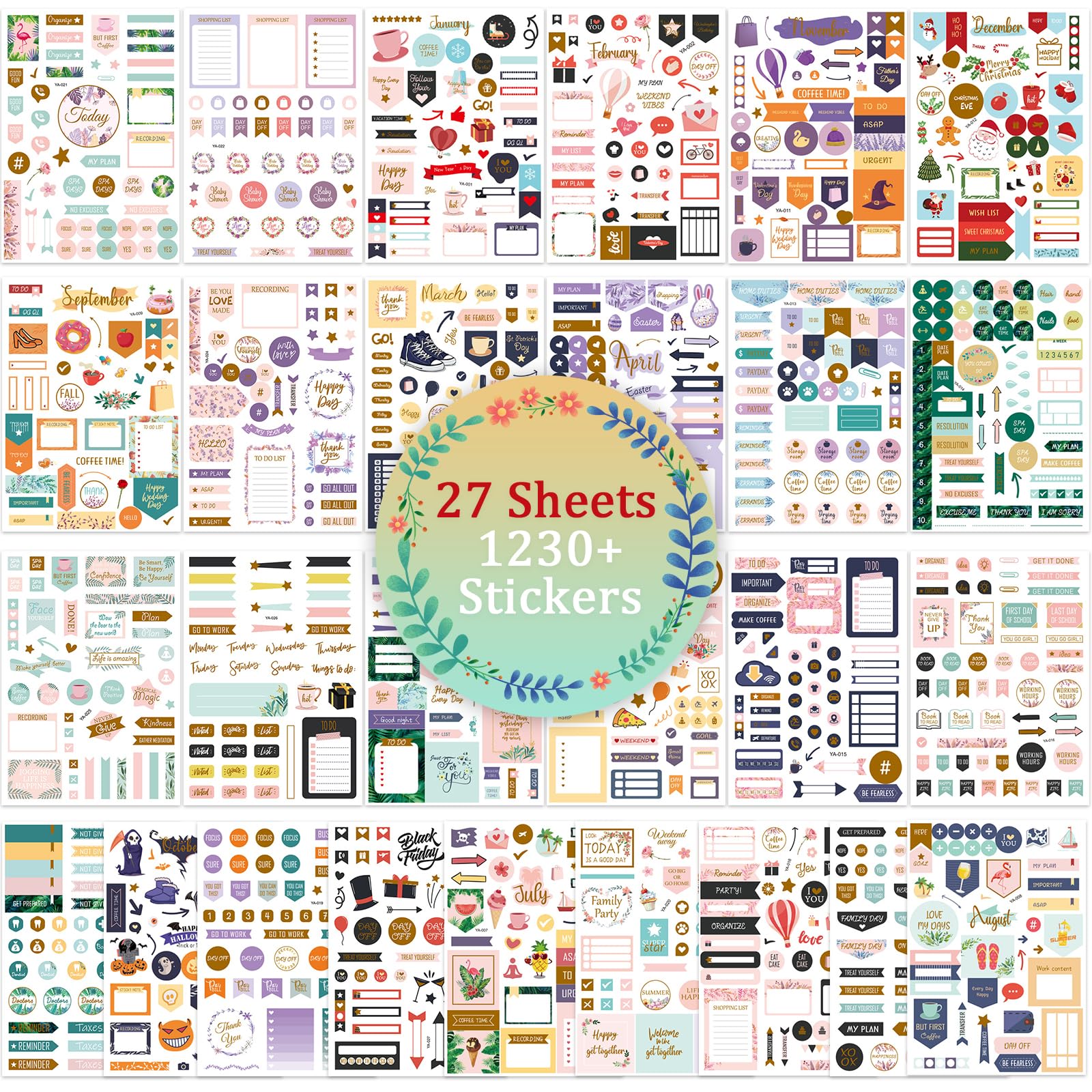 Package Includes: 27 Sheets/1230+ Planner Stickers