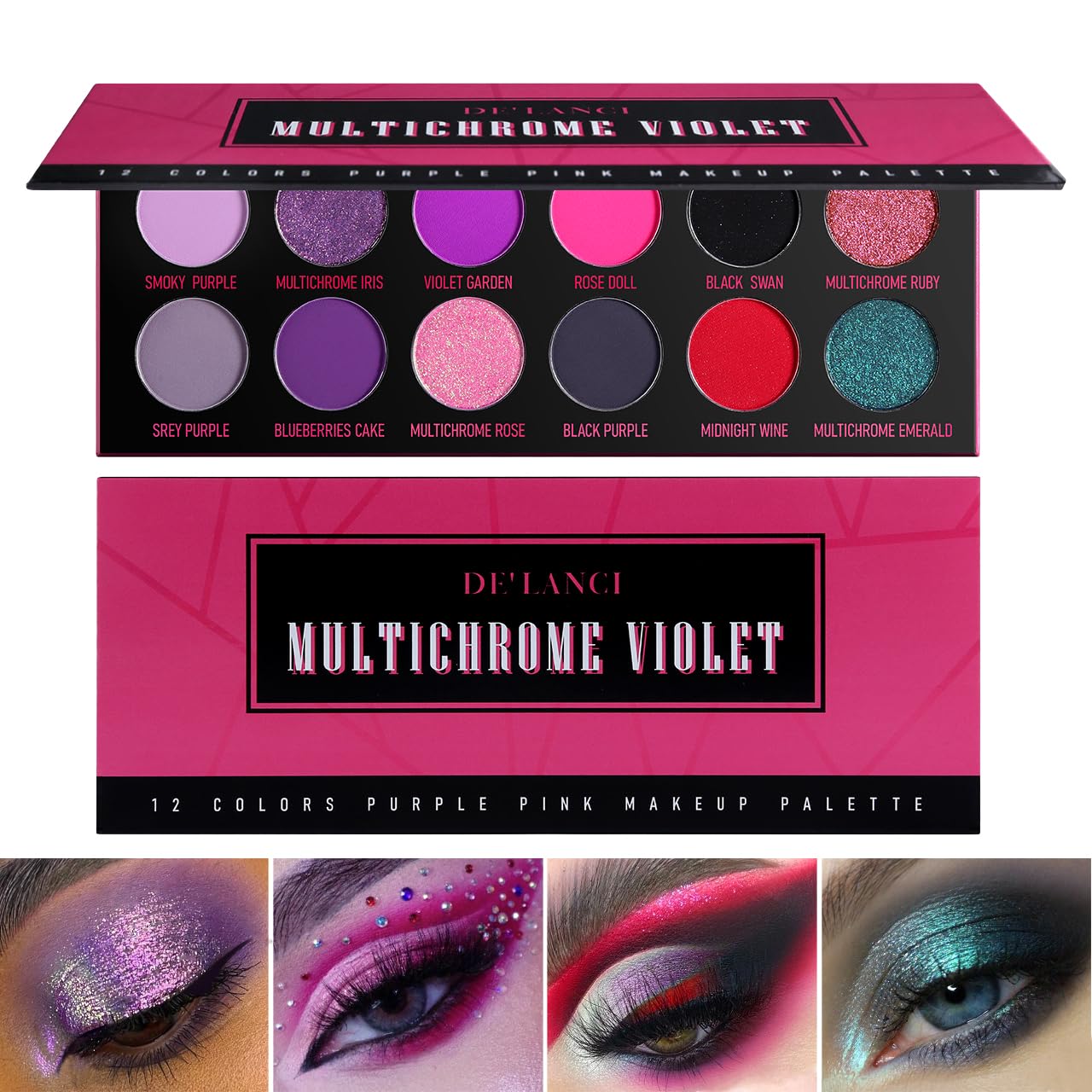 Afflano Pink Purple Multichrome Eyeshadow Palette, Duo Chrome Changing Eye Shadow Palette Pigmente, Holographic Violet Black Red Metallic Green Glitter Eyes Makeup Palette for Girls Christmas Gift