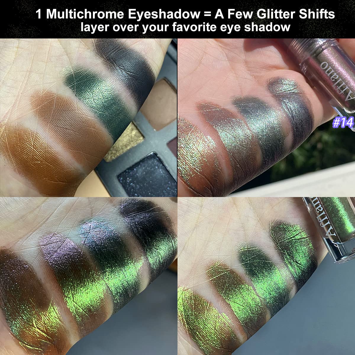 Afflano Multichrome Liquid Glitter Eyeshadow Pigmented, Intense Multicolor Shifting Chameleon Chrome Liquid Eyeshadow Glitter Eye Makeup, Holographic Sparkle Metallic Shimmer Eyeshadow Liquid #14