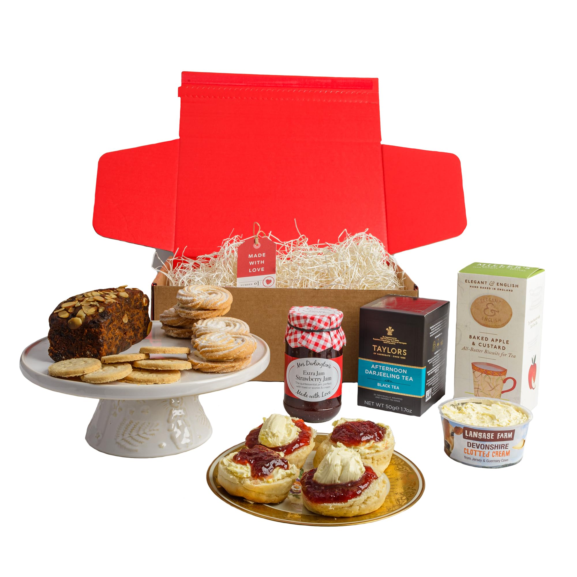 Afternoon Tea Hamper | British Gift Hamper With Sweat & Savoury Treats | Includes Scones, Clotted Cream, Strawberry Jam, Biscuits, Teabags & Dundee Cake | Hampers & Gourmet Gifts
