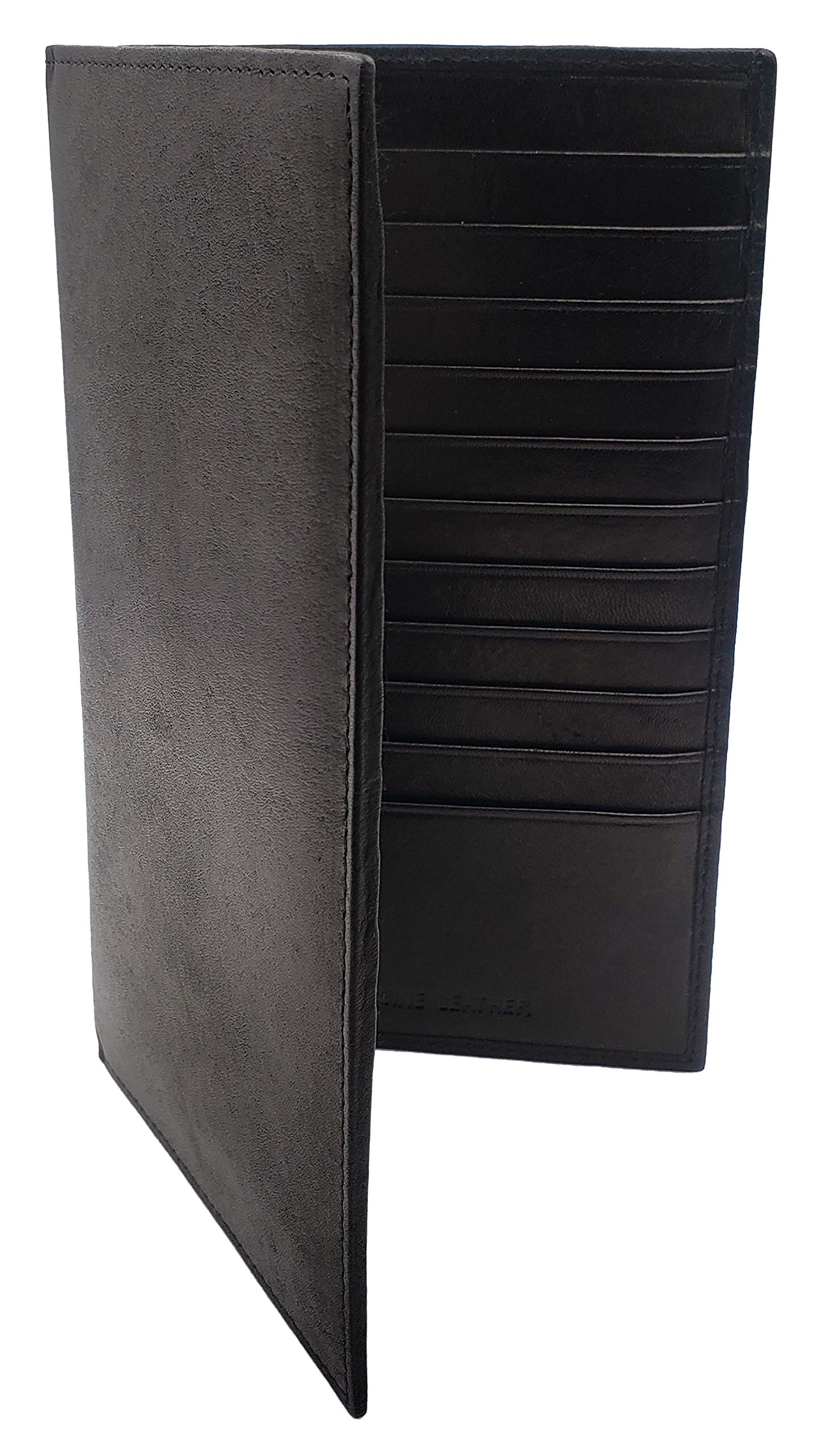 Genuine Leather 20 Card Slots 1 ID Slot 2 Side Slip Pockets for Cash and Receipts
