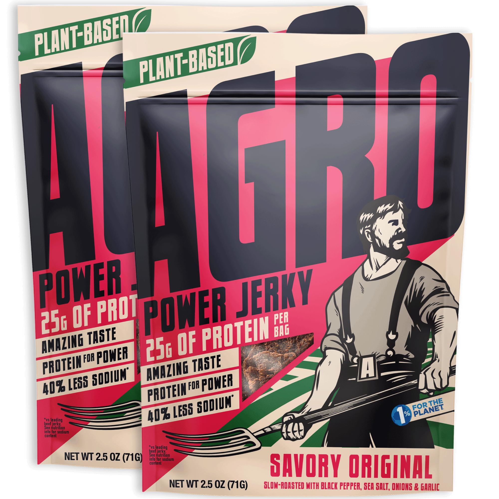The most like traditional beef jerky. Slow-roasted with black pepper, sea salt, garlic and onions. 25g lean, plant-based protein per bag and 40% less sodium than beef jerky.