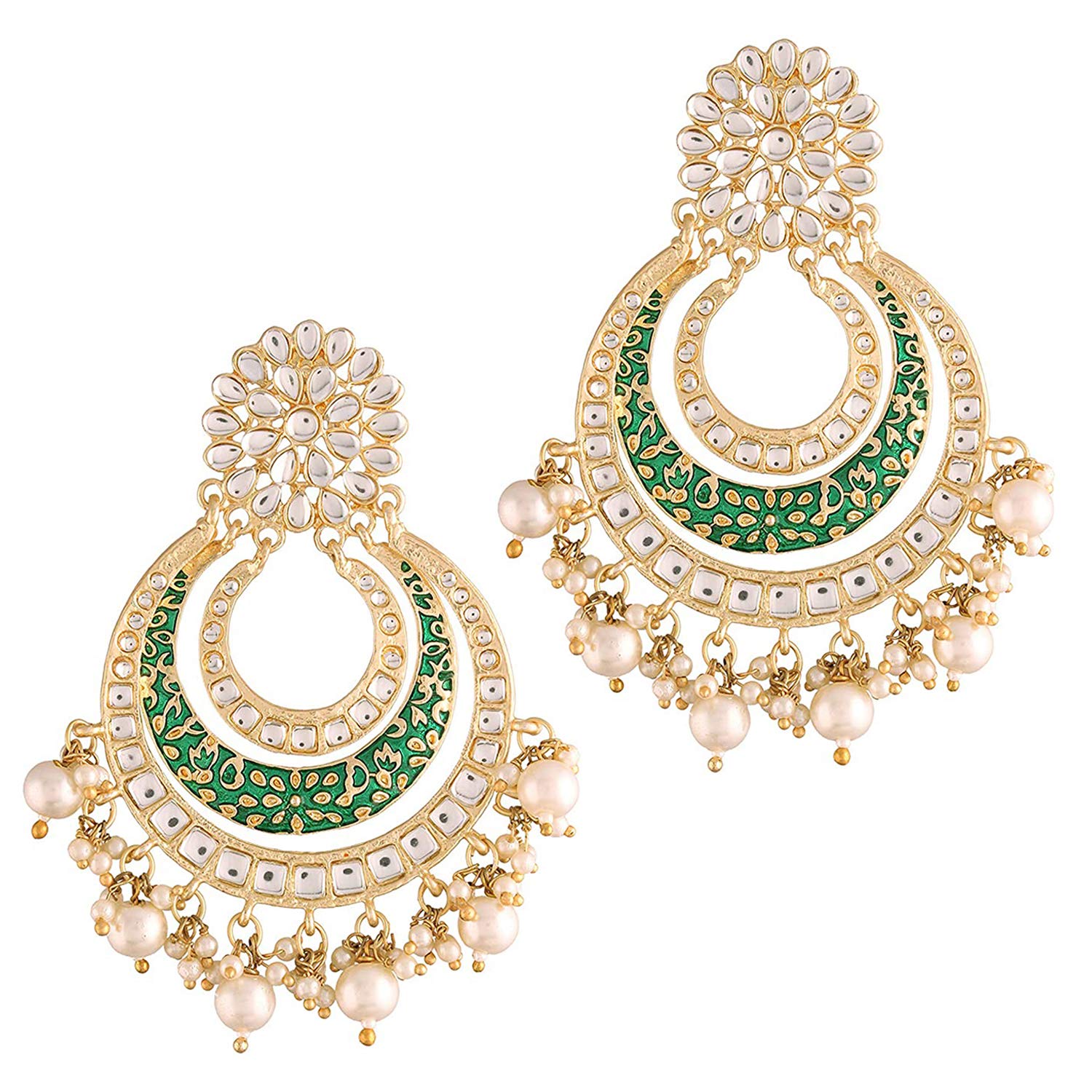 Aheli Classy Traditional Chandbali Earrings Indian Wedding Bridal Bollywood Fashion Jewelry for Women (Green)