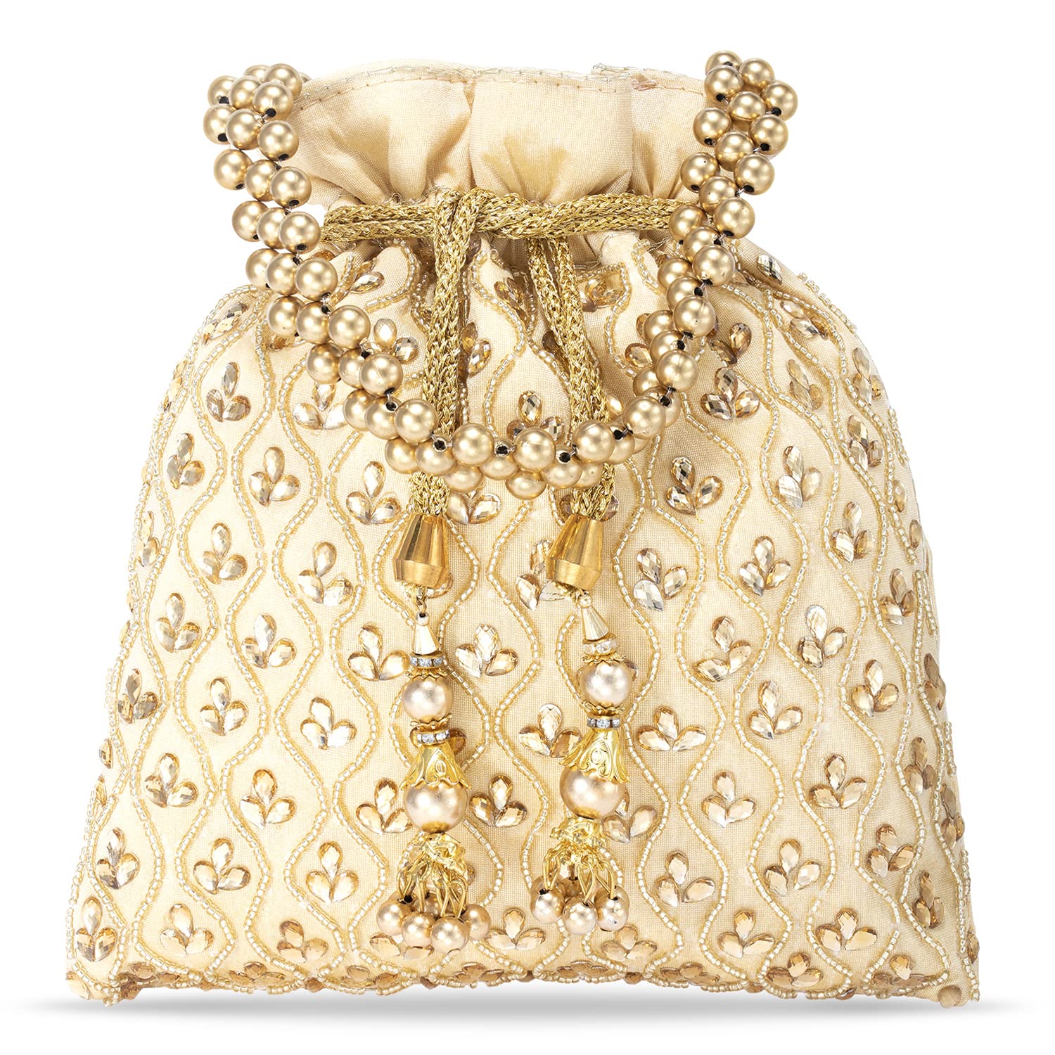 Aheli Indian Potli Bags for Women Evening Bag Clutch Ethnic Bride Purse with Drawstring (P27CRM)