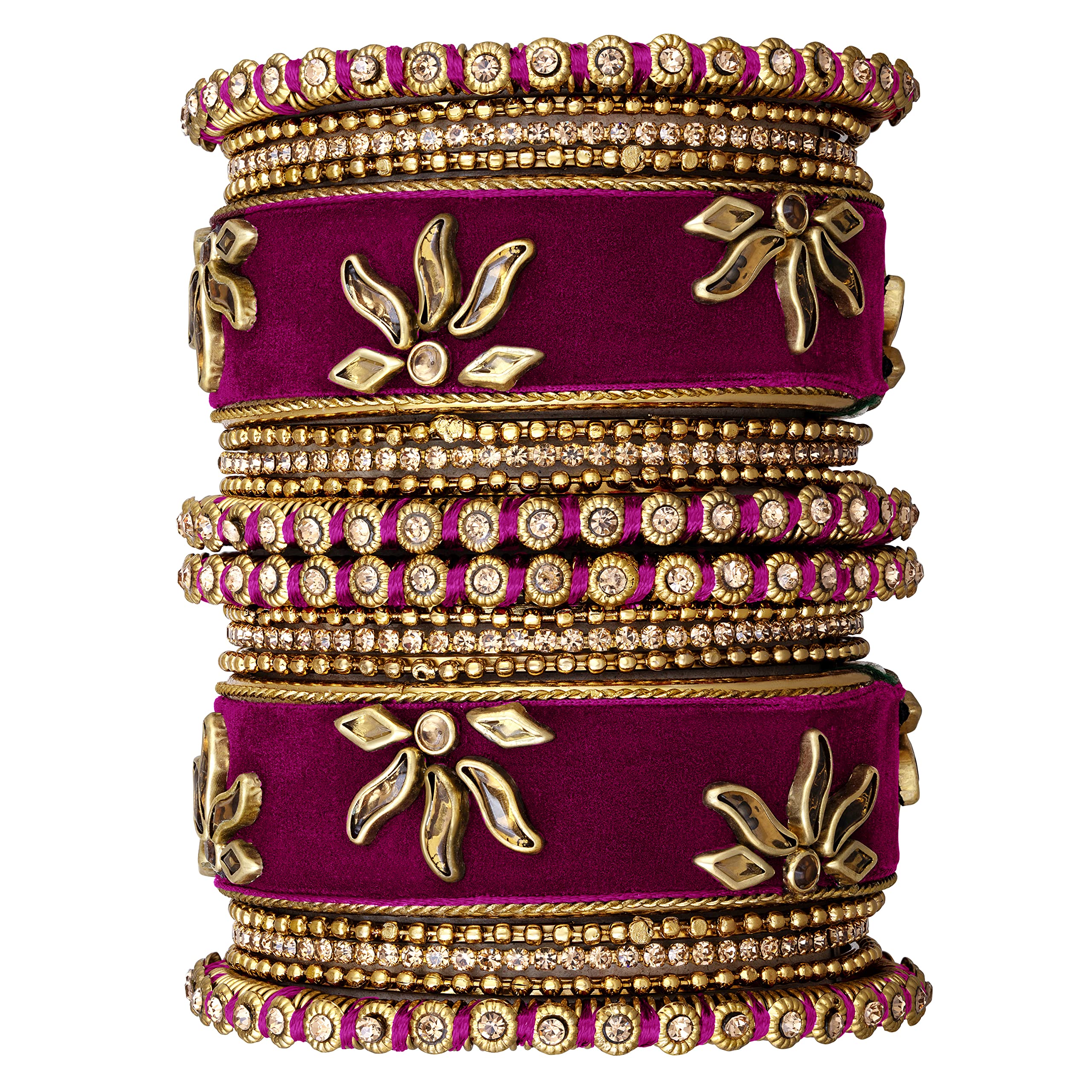 Aheli Matching Floral Velvet Silk Thread Chuda Chura Bangle Set Indian Traditional Bridal Fashion Jewelry for Women Girls (Size - 2.6)