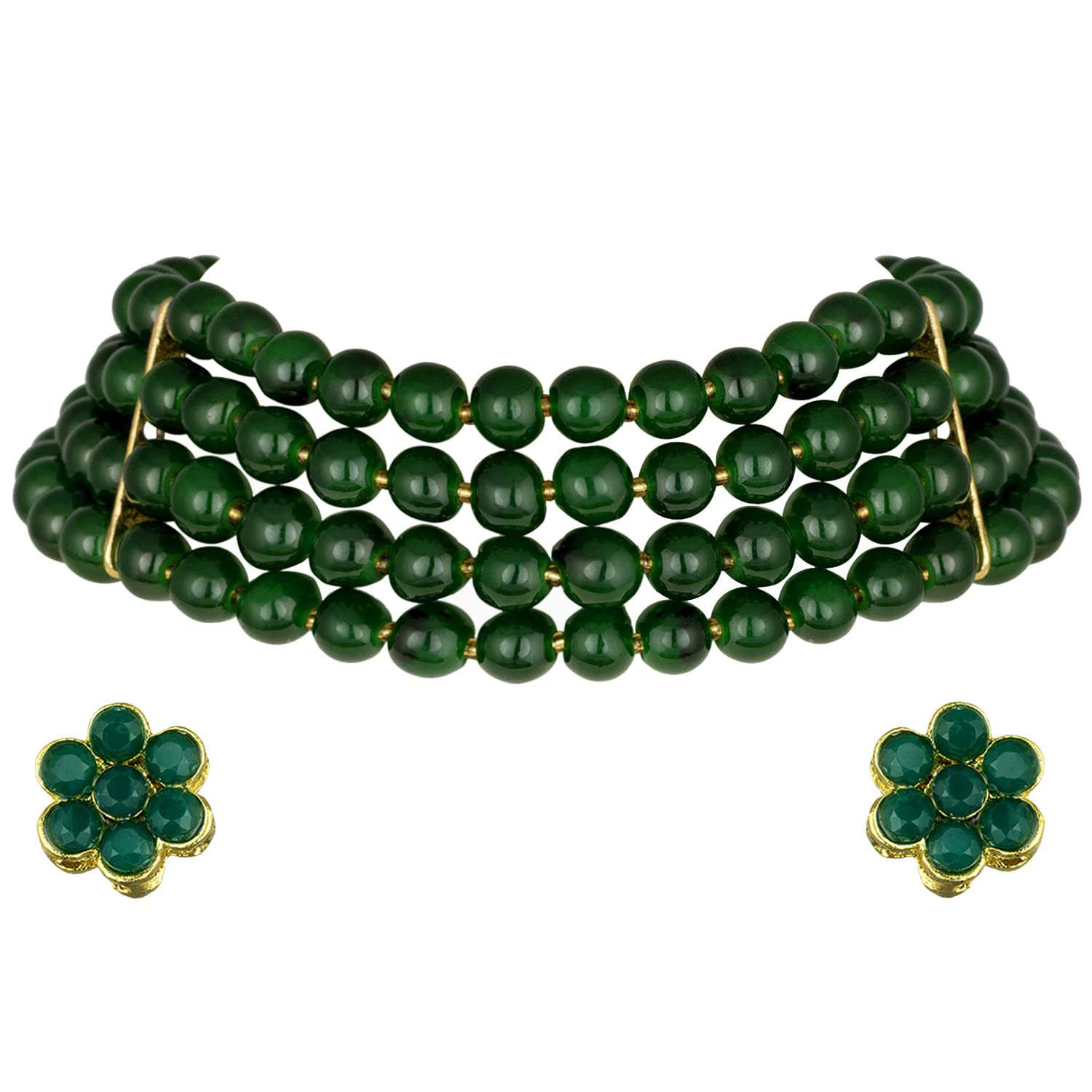 Aheli Pearl Beaded Choker Necklace with Stud Earrings for Women Girls Indian Traditional Bollywood Jewelry Set