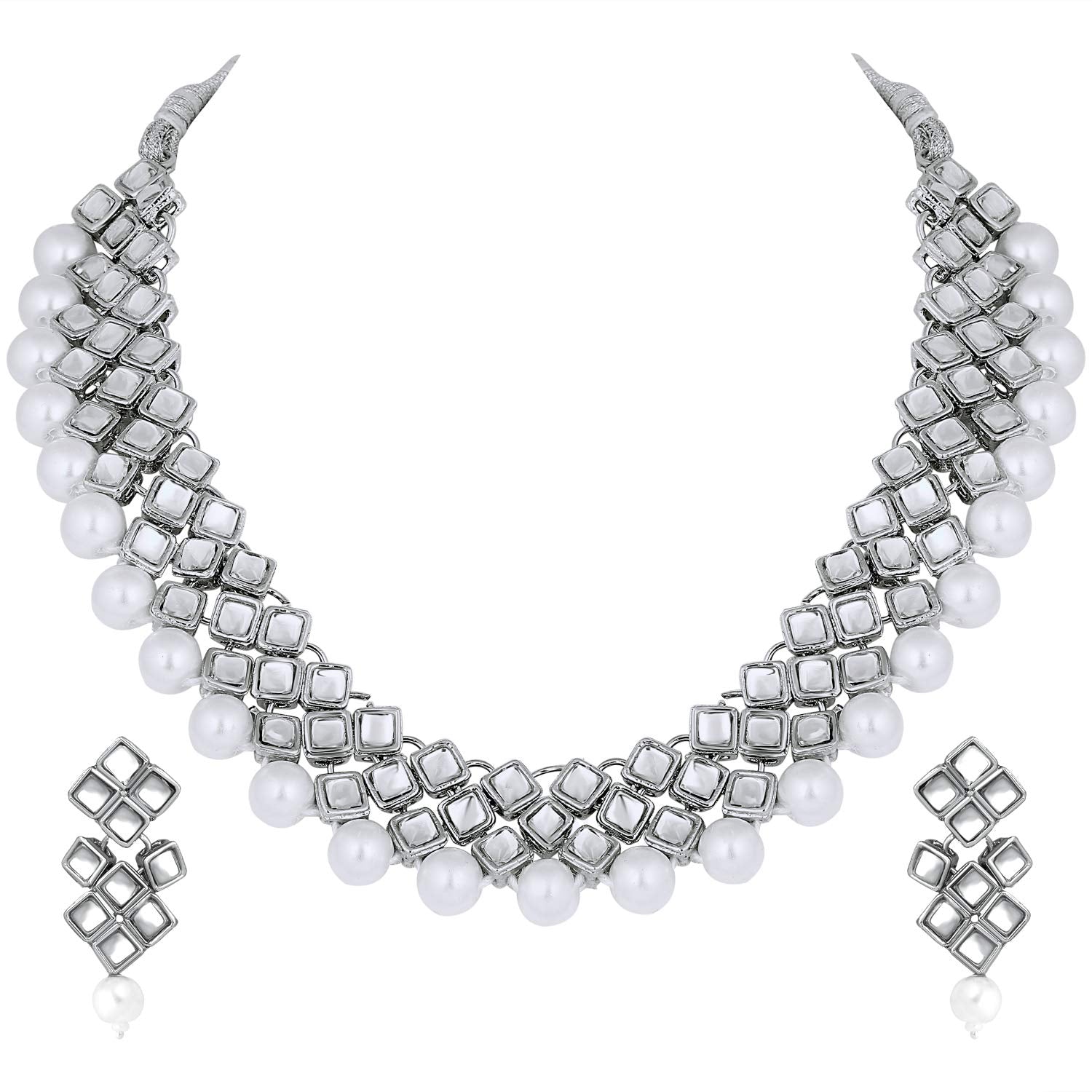 Aheli Stylish Bollywood Wedding Party Wear Necklace Earring Set Indian Ethnic Traditional Jewelry for Women (Silver)