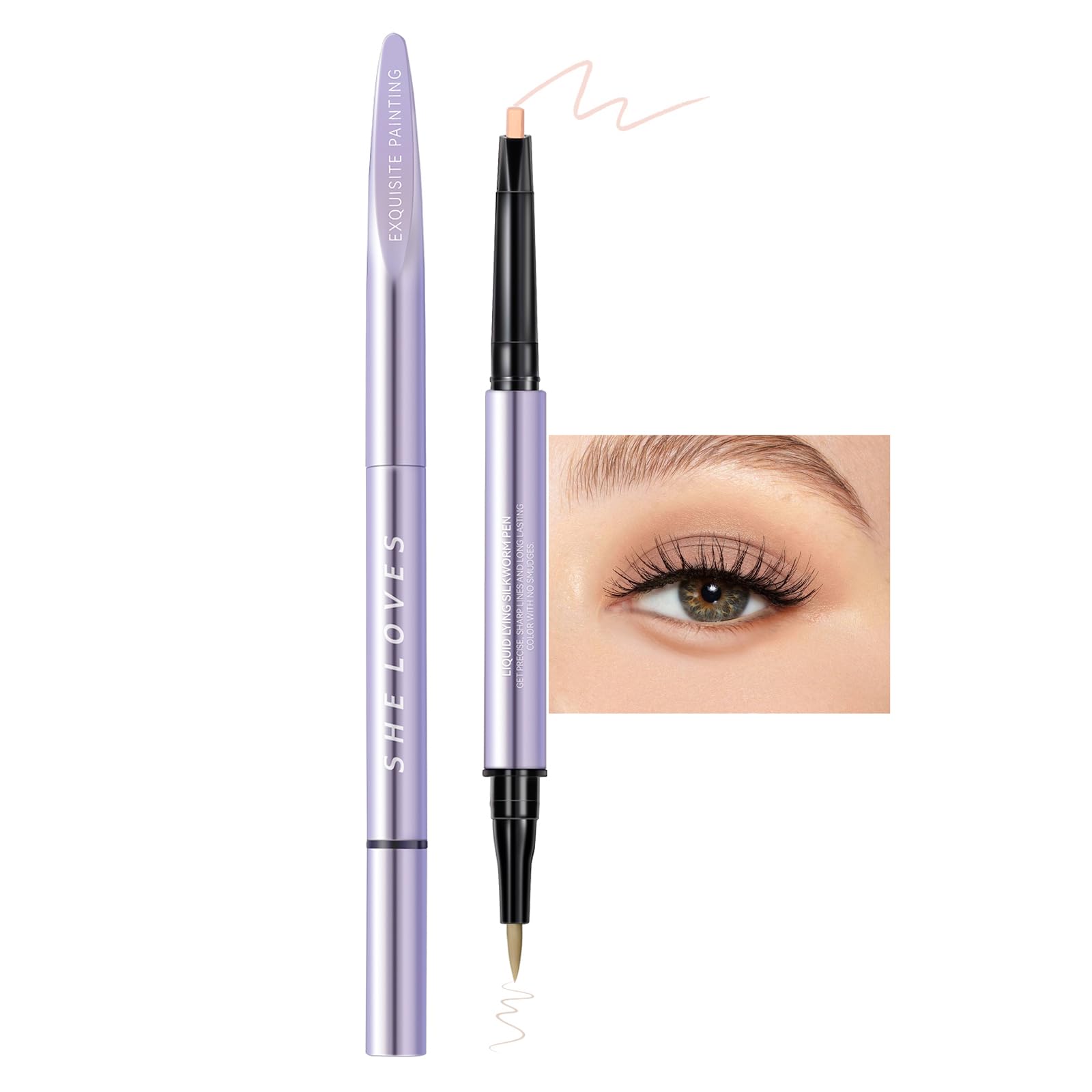 AKARY Liquid Eyeliner Lying Silkworm Pen, Matte Glitter Dual-ended Waterproof Eyeshadow Liner Pencil, Quick Drying, Long-lasting Colored Eyeliner for Eye Makeup, 01 Matte Nude Apricot + Chestnut Brown