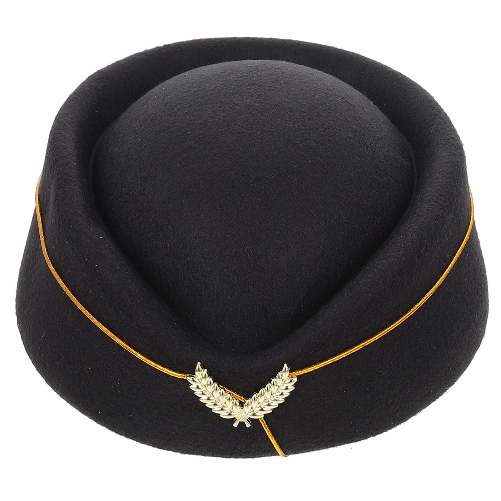 Alipis Black Flight Attendant Hat Felt Stewardess Cap Cosplay Air Hostess Hat Pilot Captain Costume Hat Hair Accessories
