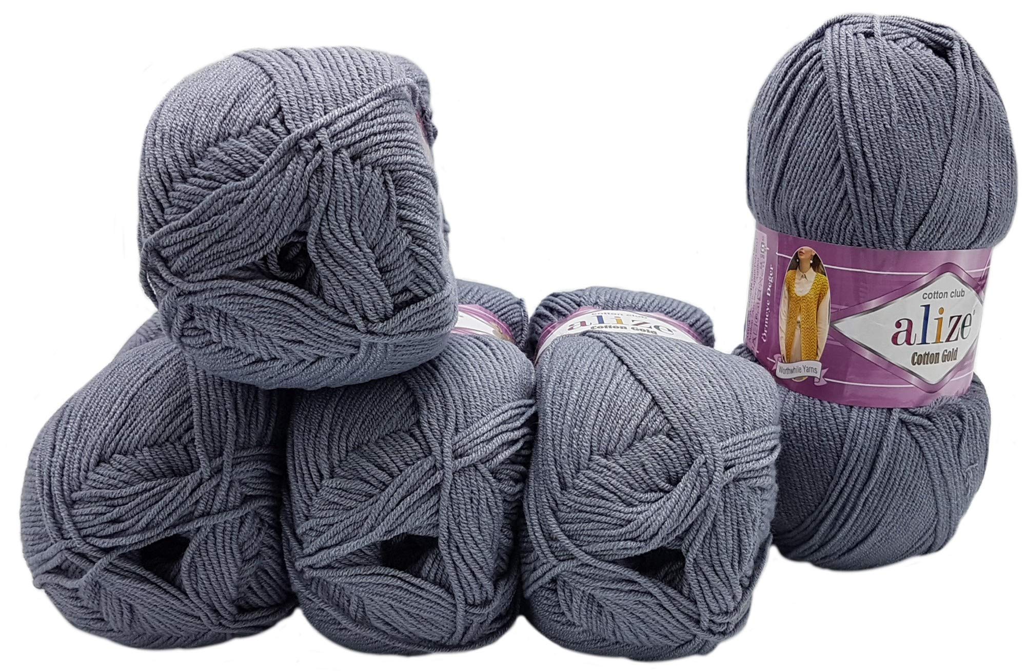 5 balls of knitting wool with cotton for knitting, crocheting or crafts. Each ball 100 grams, total 500 grams. Each ball 330 m = 1650 metres. The wool is made from 55% cotton and 45% acrylic. Knitting and crochet details: suitable for needle size 3.5-5 (knitting) or 2-4 (crochet). Tension sample: 26 stitches over 38 rows = 10 x 10 cm. Colour: solid colour, available in various shades.