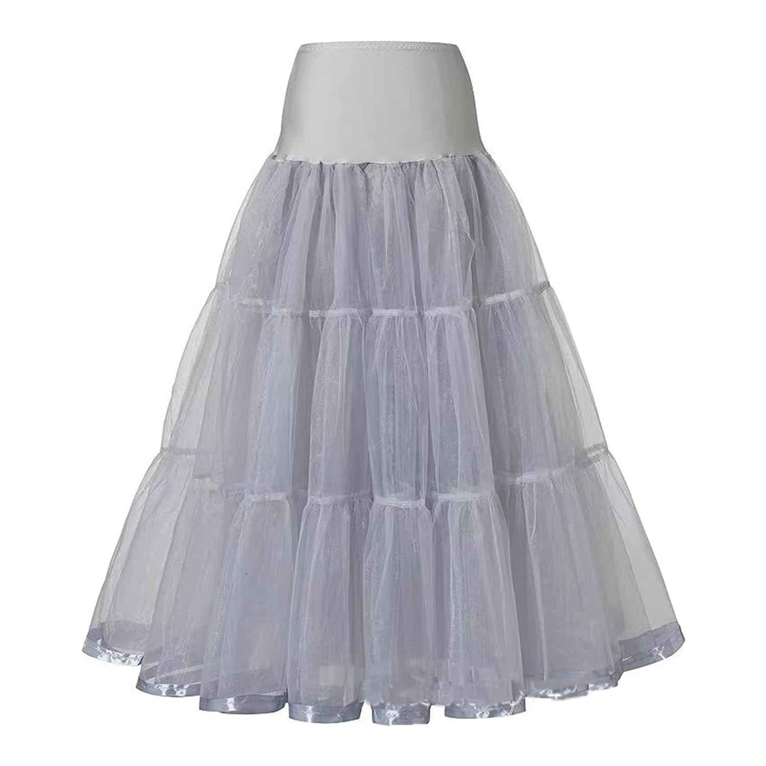 Alunsito Women's Crinoline Petticoat Hoopless Skirt A-Line Underskirt Full Gown Half Slips for Dresses Long Skirt Grey S/M