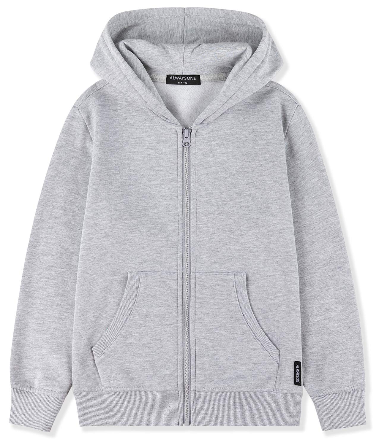 ALWAYSONE Kids Soft Fleece Casual Sweatshirt Zip up Hooded Sports Jacket with Pocket Boys Girls Athletic Hoodie 3-12 Years (light grey-s)