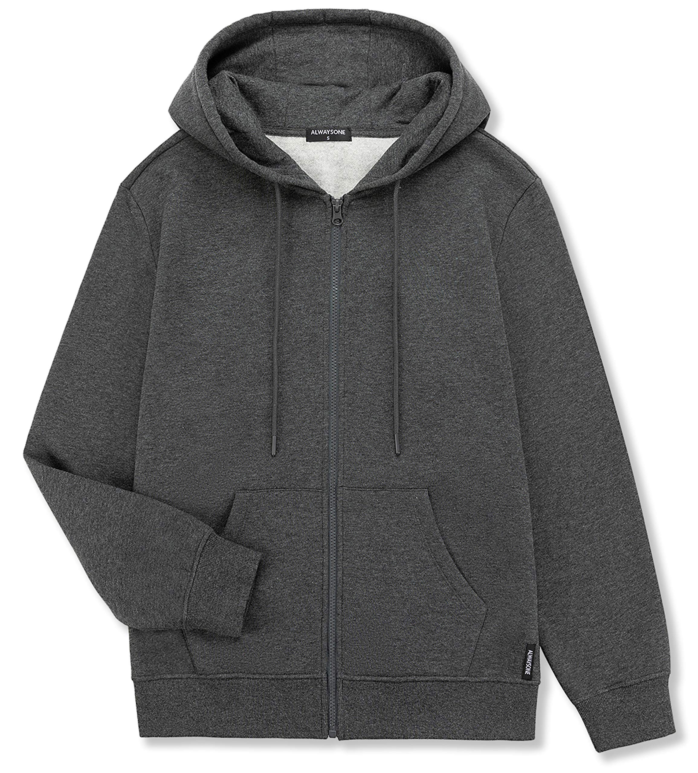 ALWAYSONE Men's Soft Fleece Hooded Sweatshirt with Pocket Casual Zip up Athletic Hoodie Size S-3XL (dark grey-l)