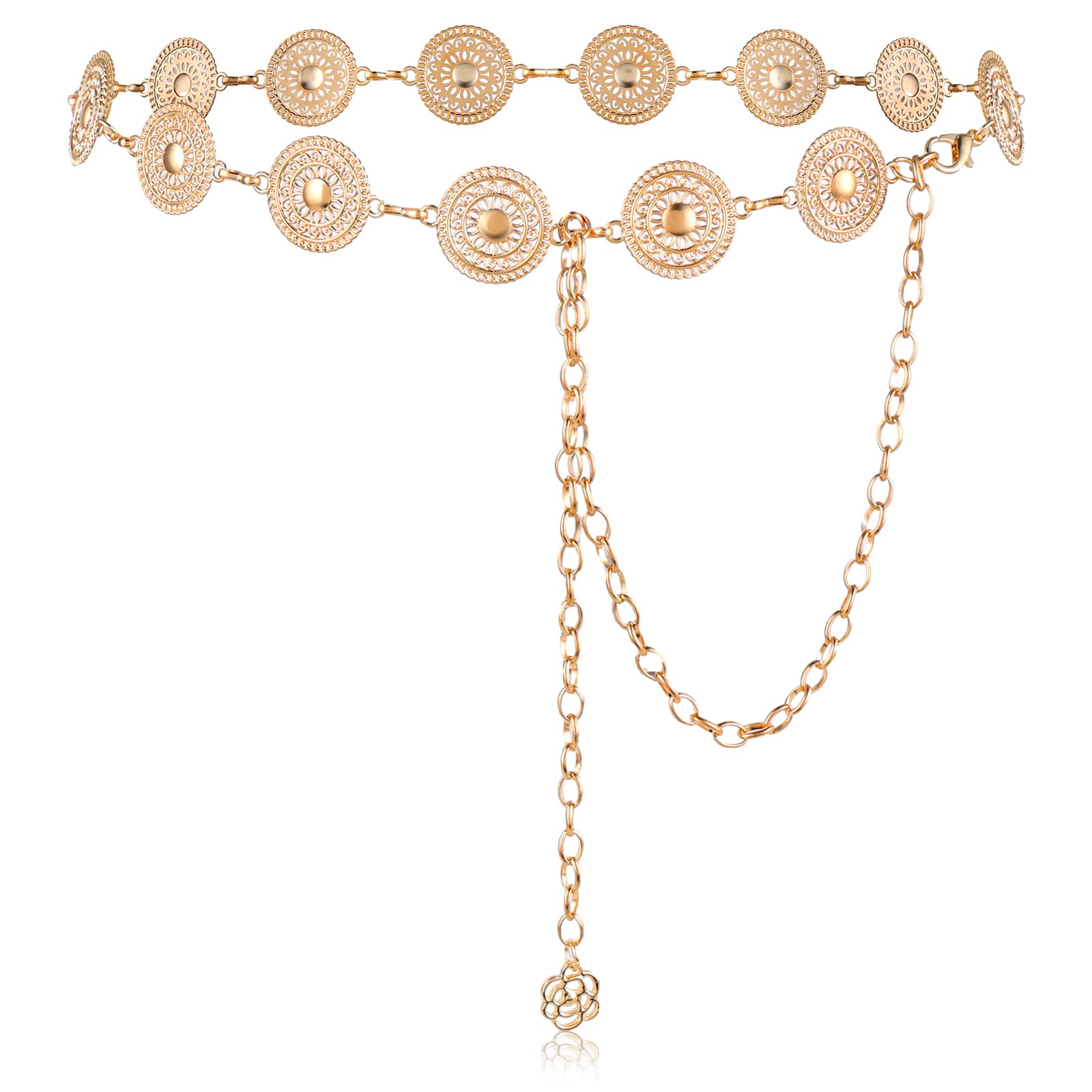 2. With the smooth and glossy surface created by highly polished finishing and particular color-retaining electroplating, this concho chain belt is brilliant in color, sturdy and durable in use, and not easy to fade.
