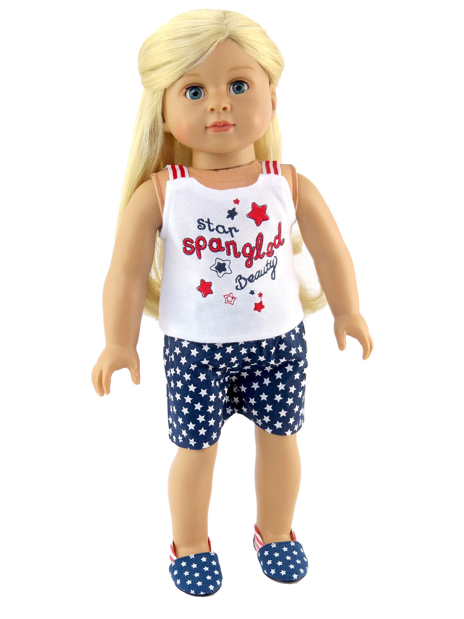 American Fashion World Fourth of July Shorts Set for 18-Inch Dolls | Premium Quality & Trendy Design | Dolls Clothes | Outfit Fashions for Dolls for Popular Brands