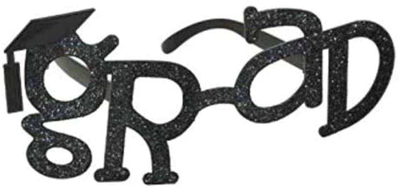 Be a proud 2016 graduate, glimmer in style wearing our Grad shaped plastic glasses in Black glitter for your graduation party/ event.