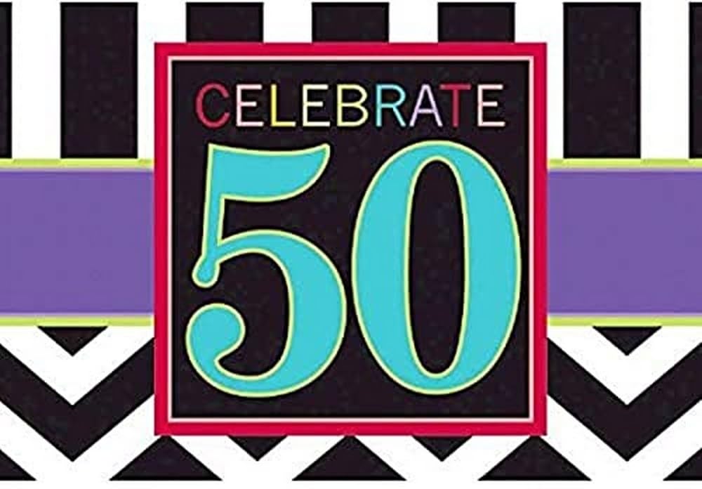 You turned 50... now it's time to celebrate. Invite your friends and family with these nicely designed 50 Celebrate Invitations! Each invitation is decorated with the message "Celebrate 50" in a black box with red outlining in the center. A stripe of purple runs through the center and the top half of the invite is decorated with black and white stripes and the bottom is decorated with black and white chevron print. The invites are made of paper and measure 4.8 in. X 3.5 in. 8 invites are included per package.
