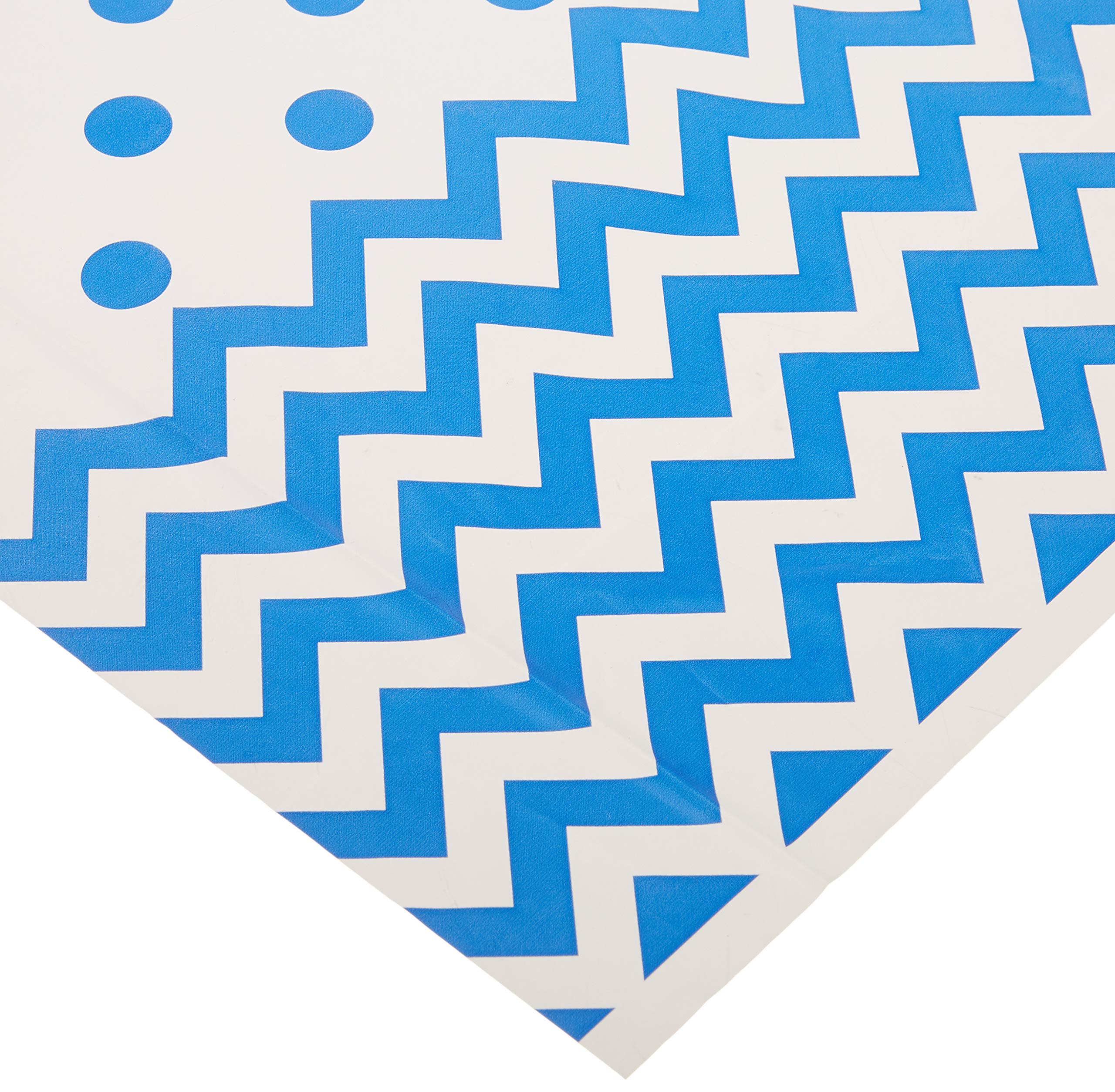 Set a bold foundation for your place settings with a Royal blue polka dot & chevron plastic table cover. The classic blue and white dot and chevron pattern complements the decor at your birthday party, holiday party, or special event. Use this durable plastic table cover to protect your table from party spills, and when your chic celebration is over, just wrap it up and toss it in the recycling or trash.