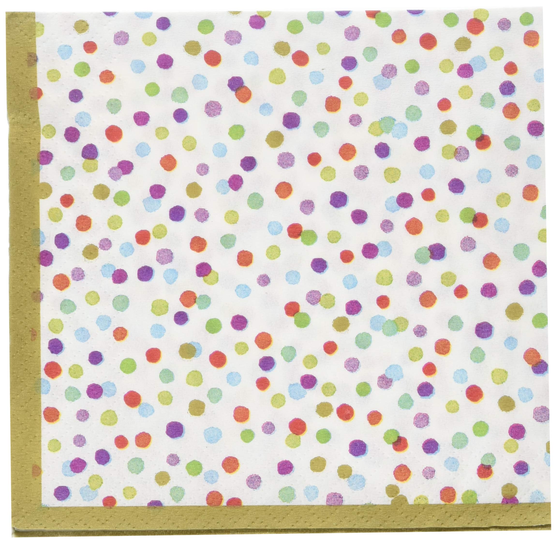 Add our rainbow confetti beverage napkins to your celebration tables! Features a white napkin with colorful polka dots and a gold border.