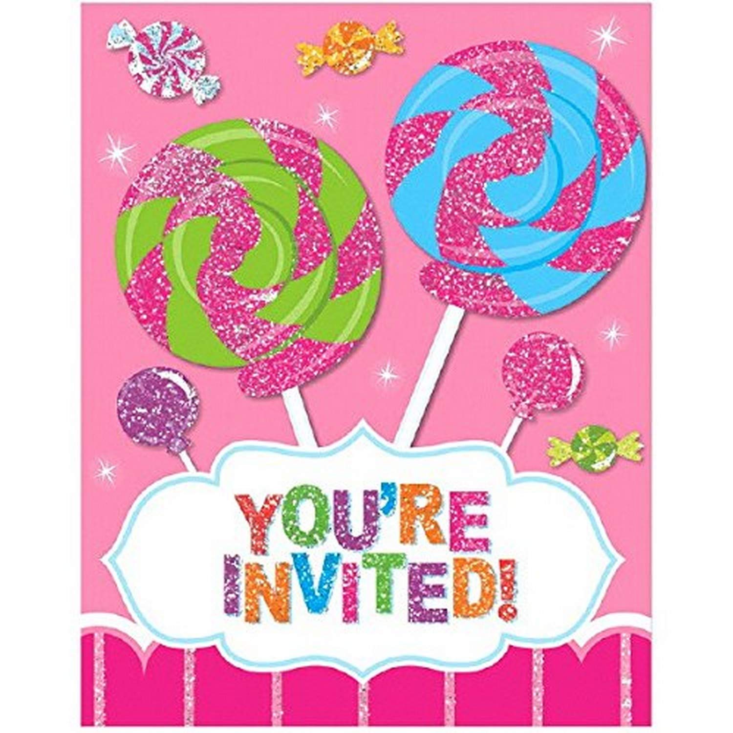 Let your friends crave for candies when you send them this Candy Party 6" x 6" Large Novelty Glitter Invites for your party.