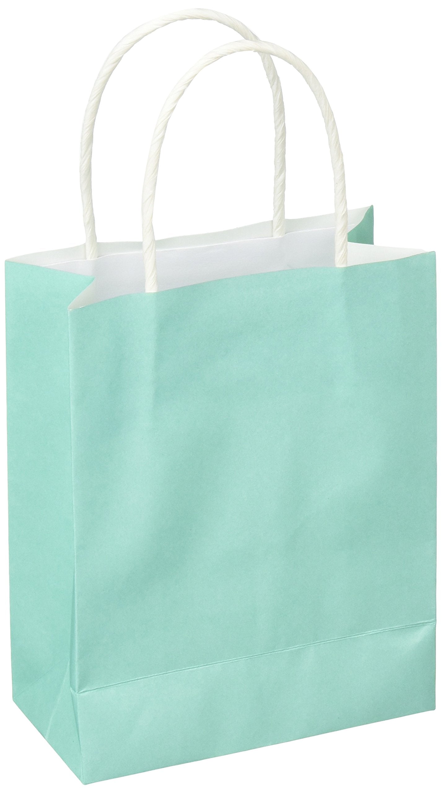 DescriptionTea parties and dress up clothes. This Bright Robins Egg Blue Kraft Bag will truly make your guests on their toes.