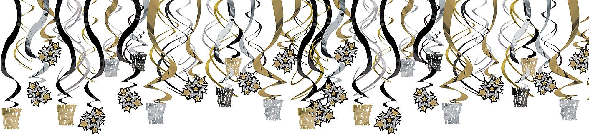 Give your new year's Eve party a little Star power with our black, gold & silver new year's swirl decorations. Hang from the ceiling or in a doorway for an instant flurry of fun.