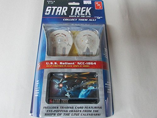 AMT 914 Star Trek U.S.S. Reliant NCC-1864. Plastic Model Kit. Snap Together Assembly. 11 Parts. Ships of the Line Series. #3 in Series. Includes Trading Card Featuring Eye-Popping Images from the Ships of the Line Calendars. No Glue or Paint Needed! All Parts Pre-Decorated. Assemble in Minutes. Ages 13 and Up. Produced in 2015.