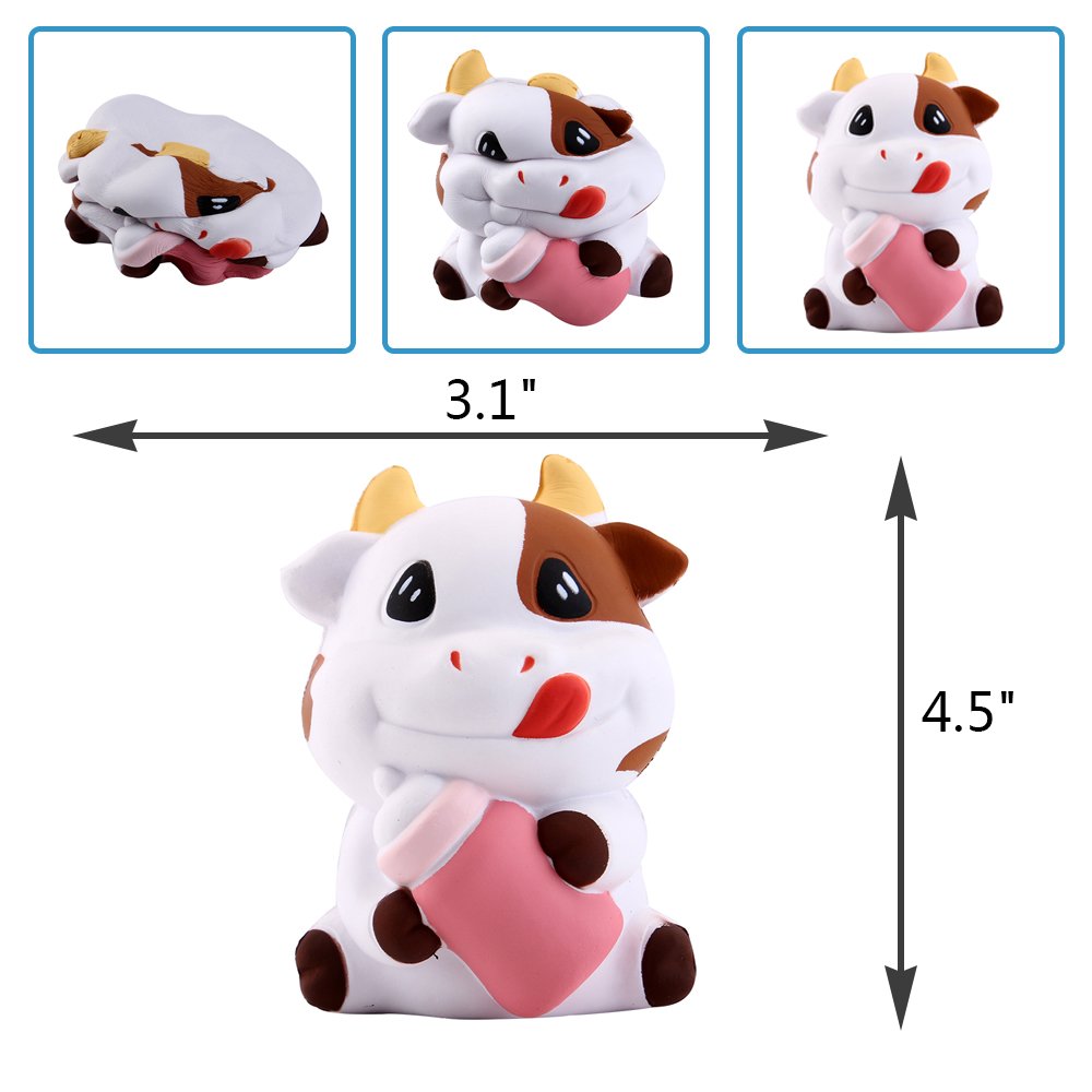 Anboor 3.1 Inches Squishies Cow Kawaii Milk Bottle Soft Slow Rising Scented Animal Squishies Stress Relief Kid Squeeze Toys