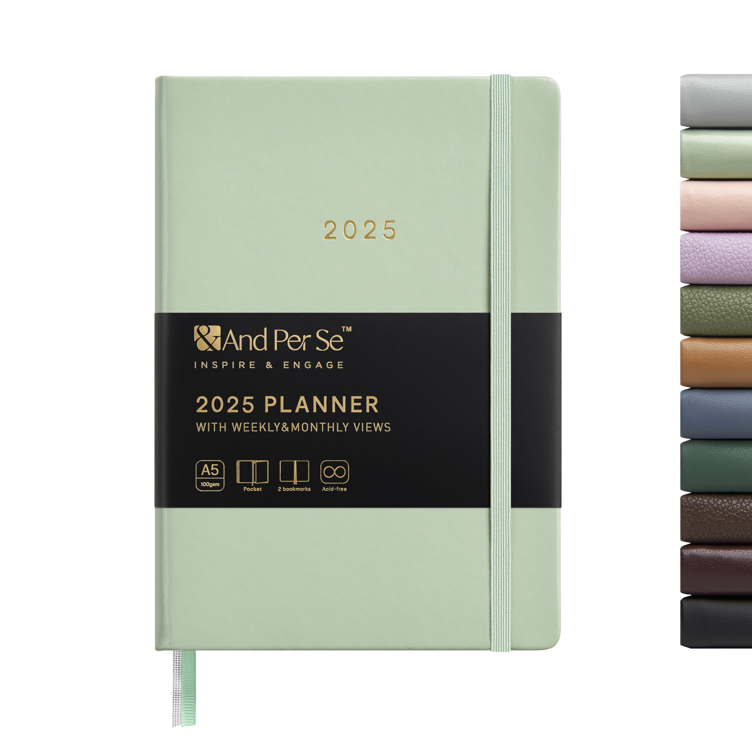 And Per Se 2025 Planner-Daily, Weekly & Monthly Hardcover Planner, 5.7" x 8", Daily Schedule, Monthly Tabs, 100 GSM Thick Paper, Leather Cover, Back Pocket?A5 Size