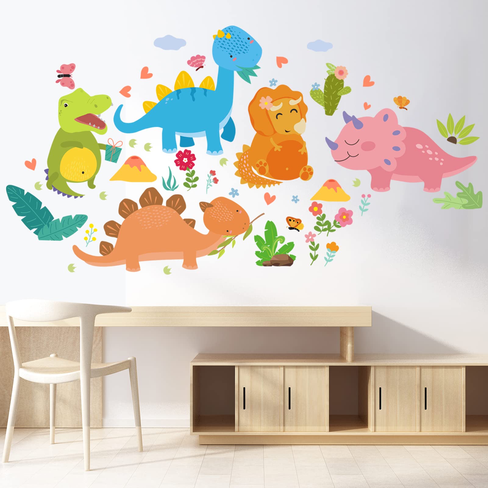 AnFigure Dinosaur Wall Stickers for Children Boys Girls Baby Room Children's Room Wall Stickers Bedroom Bathroom Classroom 3D DIY Animal Dino Nature Plant Flowers Home Large Wall Stickers