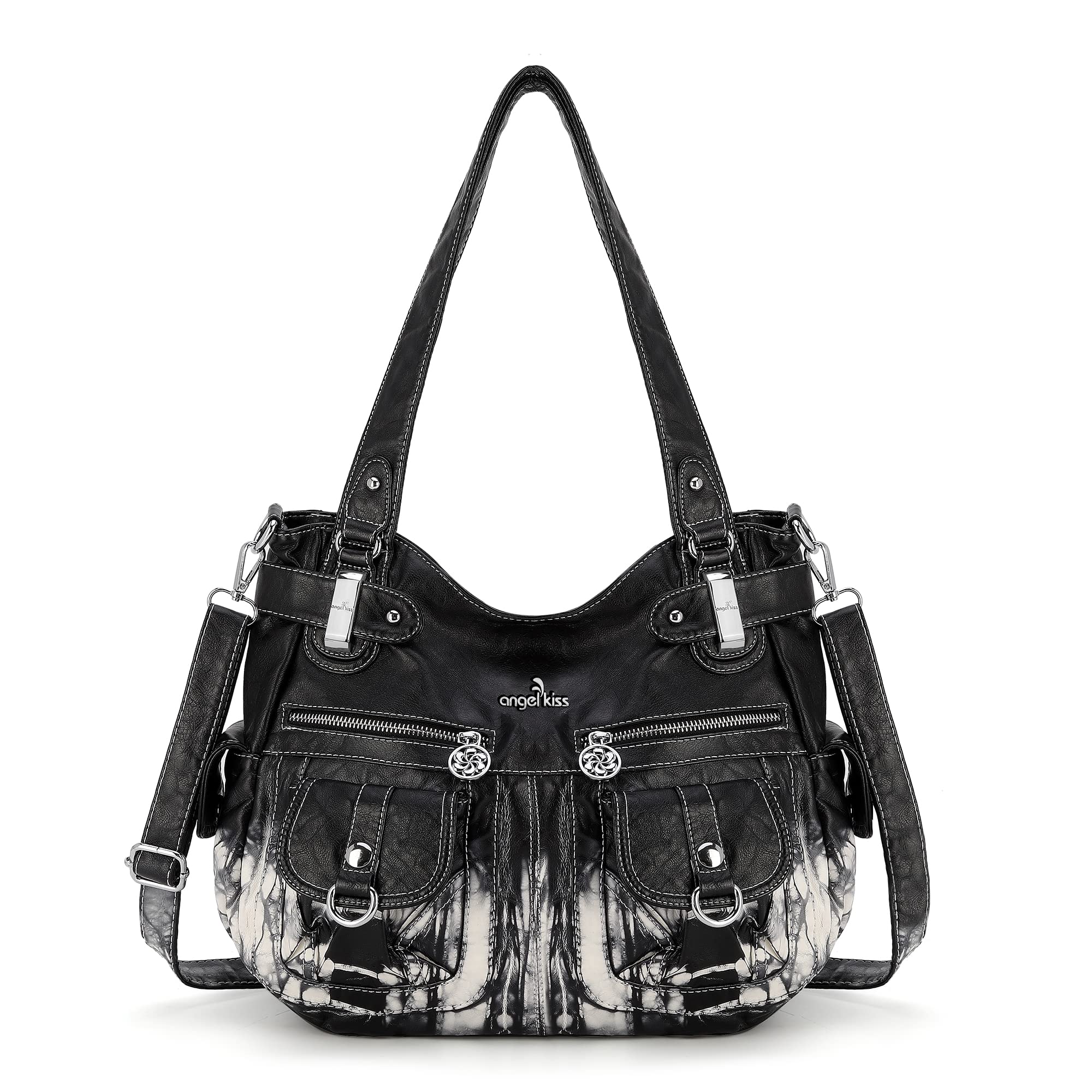 Made of high quality washed PU leather- supper soft, light weighted, durable and carefree,fashionable purses for women, perfect for shopping, dating and business, the best gift for your wife, mom, girls, and family,The size of our satchel handbag is 14" W X 12" H X 5" with a removable and adjustable straps ,Fabric-lined spacious interior with two roomy main compartments. One with interior zippered pocket and the other with cell phone and sunglasses pockets. Comfortably holds an iPad, iPad Mini or a tablet 10"x8"x1" and under,large enough and lightweight to carry lots of things; perfect for everyday use and a stylish bag for women.It can be worn in two ways, as a shoulder handbag or crossbody bag.