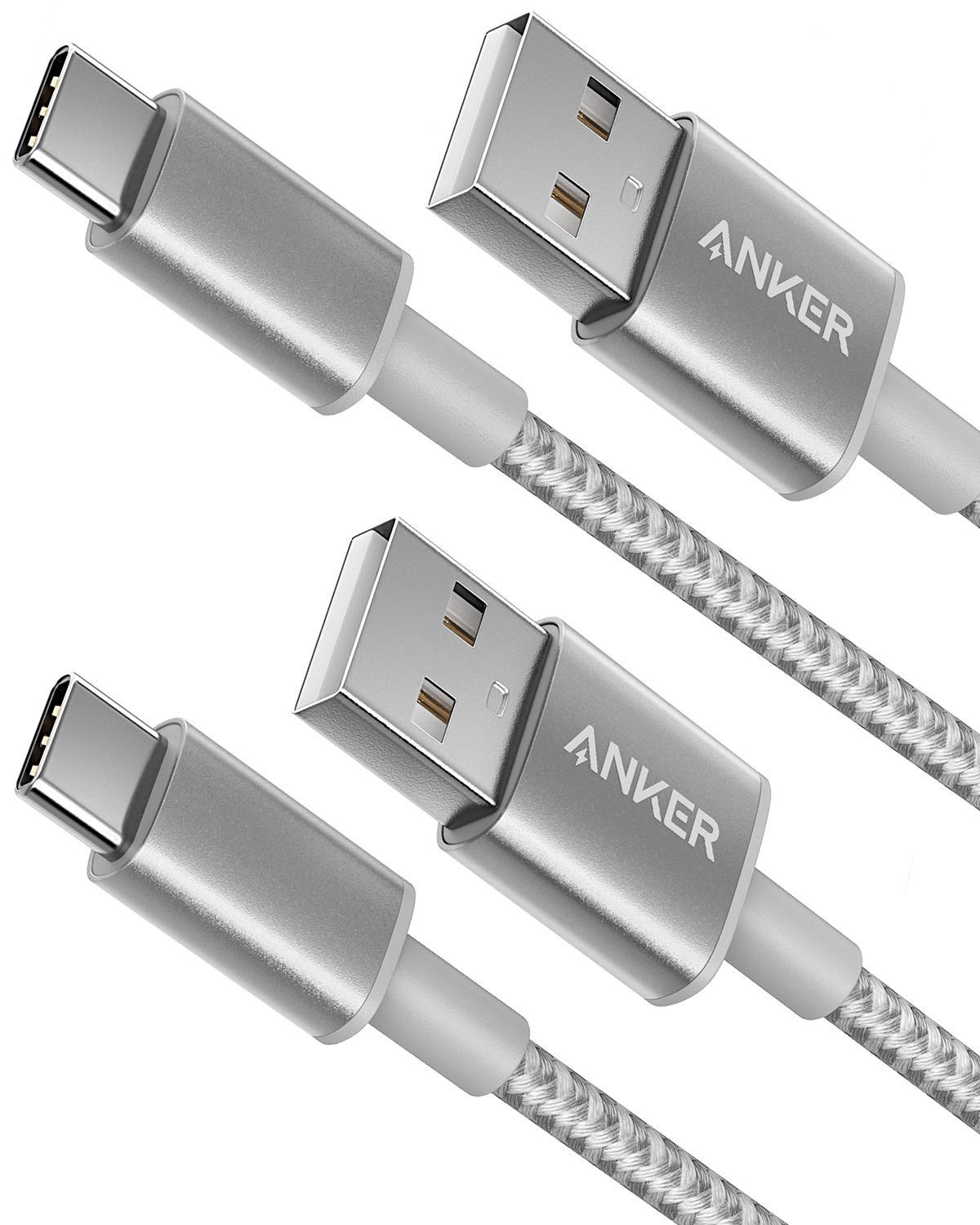 Anker USB C Cable to USB 2.0 [2Pack] Double Braided Nylon Type C Charging Cable for Samsung Galaxy S8 S8+ S9 S9+, HTC 10, Sony XZ, LG V20 G5 G6, Xiaomi 5 (Silver, 3 ft)