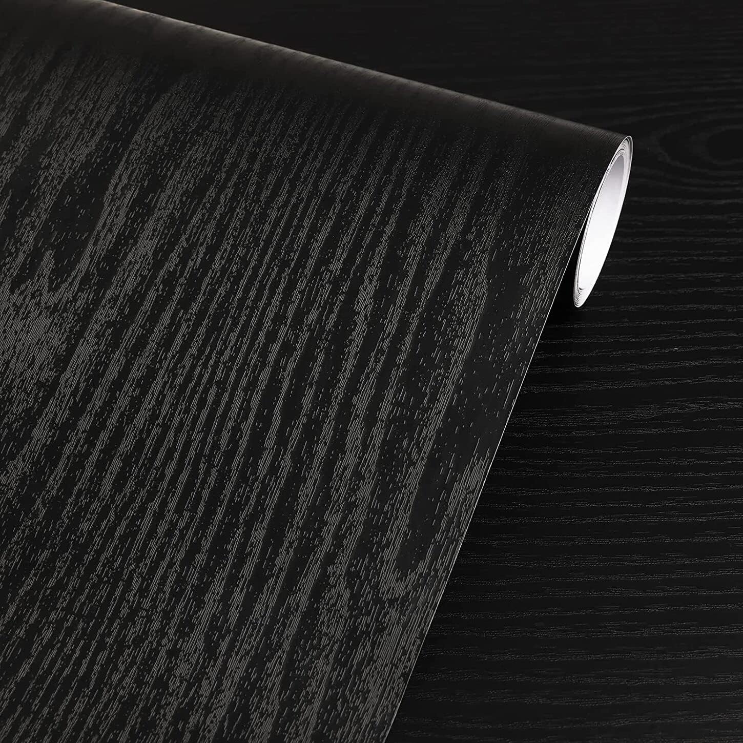 ANNA CREATIONS Self Adhesive Black Wood Wallpaper Waterproof Old Furniture Vinyl Stickers Wooden Door Wardrobe Desktop PVC Wall Papers-18''x 120''inch
