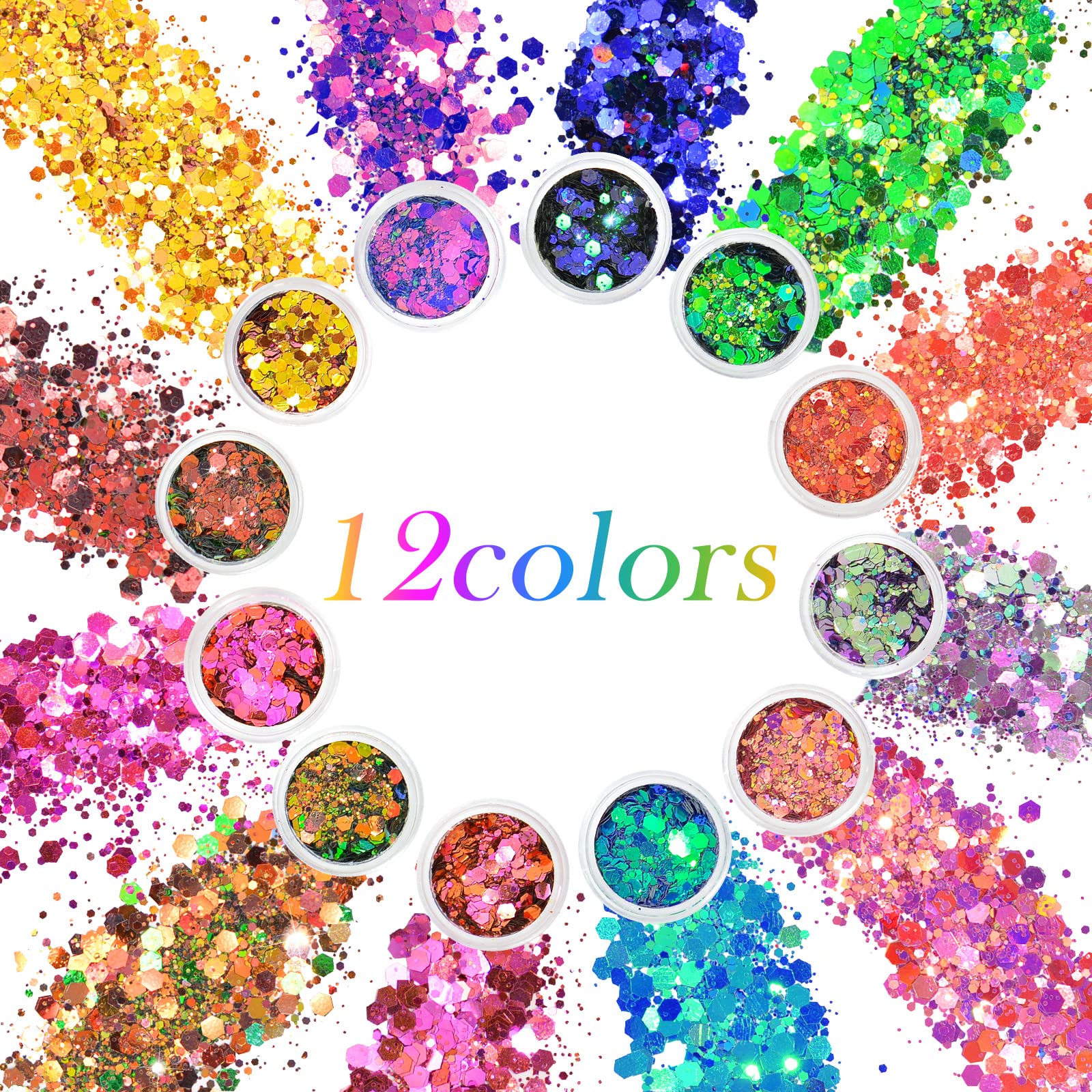 12 Colors of Chunky Glitter Powder, for Makeup and DIY Art