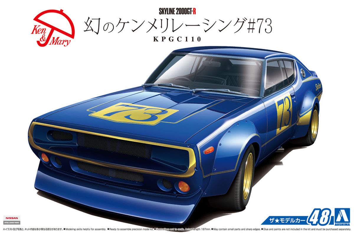This is a plastic model of "Aoshima 1/24 The Model Car Series No.48 KPGC 110 Illusory Ken Merry Racing 73". In addition to the Ska G festival, compatible models are also one after another. It evolved into a car type / grade selection type compatible kit and became more affordable. Lineup of basically normal catalog specifications and racing cars. New decal included. Many kits will also be provided to receive extra parts.