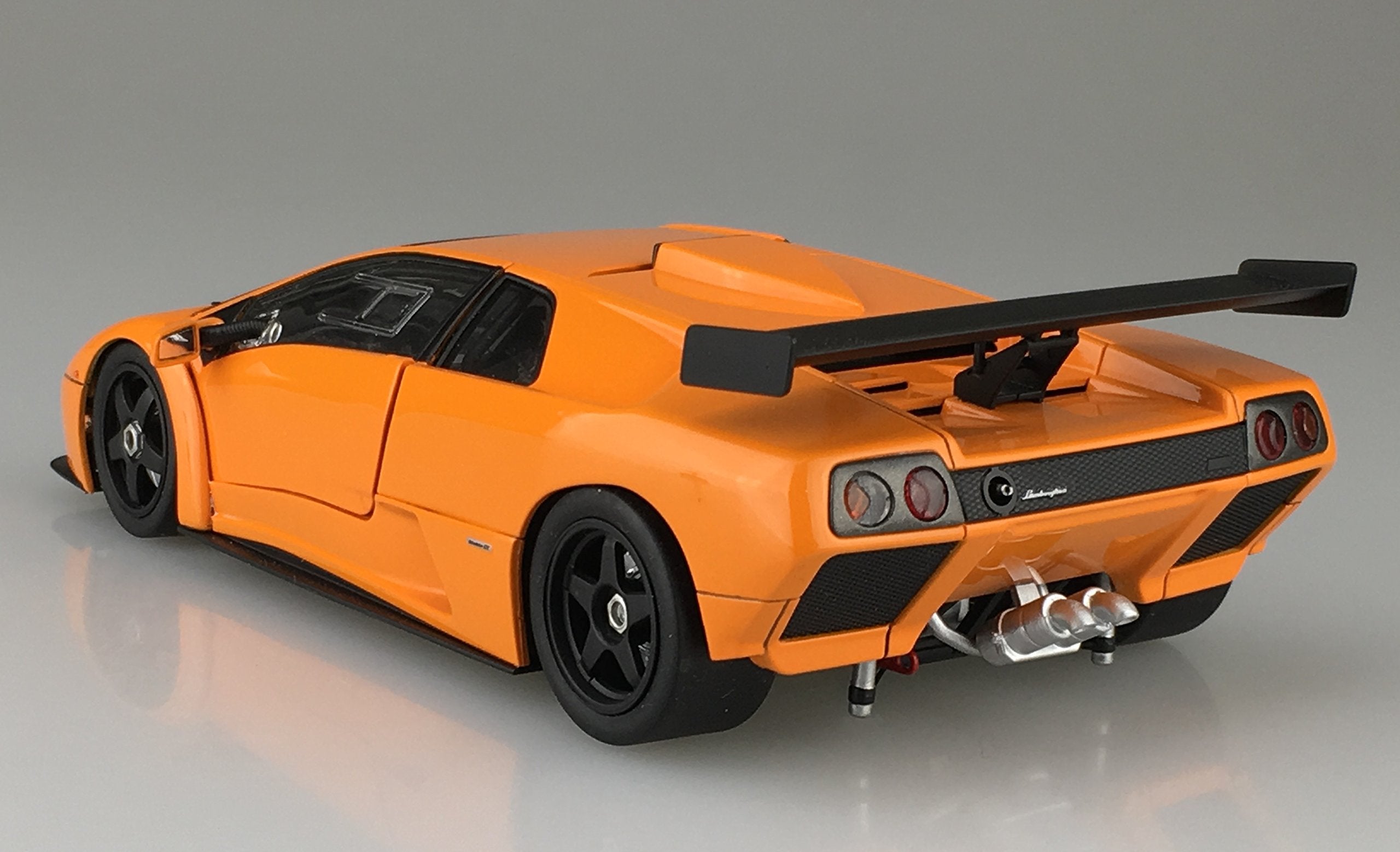 Diablo 's racing car GTR. The racing car "Diablo GTR", which was produced exclusively for only 30 cars worldwide for one make race, will join the super car series. We added dedicated parts for interior and exterior greatly. Engine, suspension reproduced as finely as possible. Door opening and closing possible kit. Tail lens is colored molding. In-depth coverage of actual cars to every corner. Window frame masking seal included.